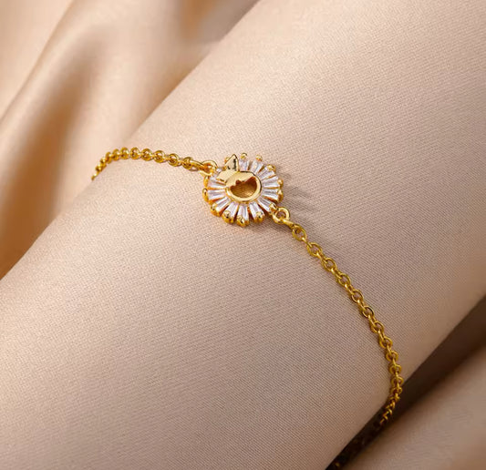 FLOREI Sunflower Dainty Chain Bracelet Silver
