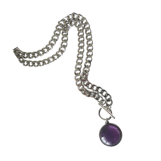VIOLET VEIL Purple Amethyst Cuban Chain Toggle Necklace Silver