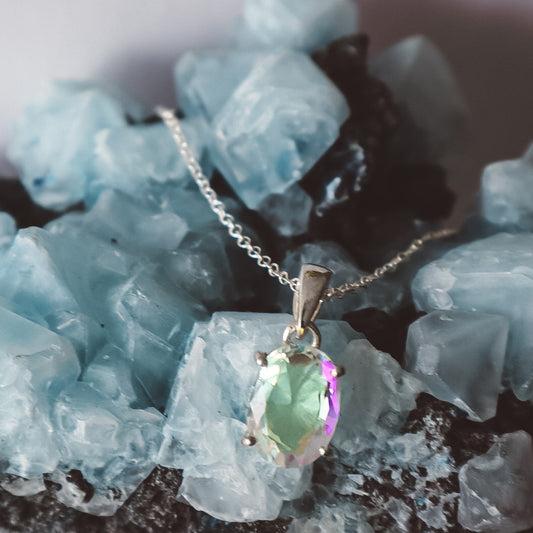 Iris Wire Wrapped Rainbow Titanium Quartz Pendant Necklace Silver