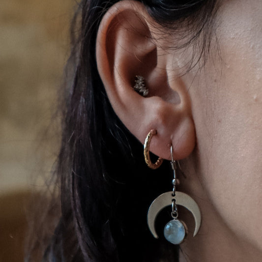 MOON SHADOW Rose Quartz Dainty Moon Earrings Gold