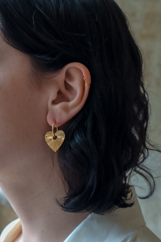 CORA Sacred Heart Charm Hoop Earrings Gold