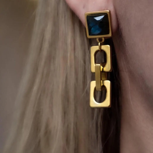 CARRE Lapis Lazuli Rectangle Hoop Earrings Silver