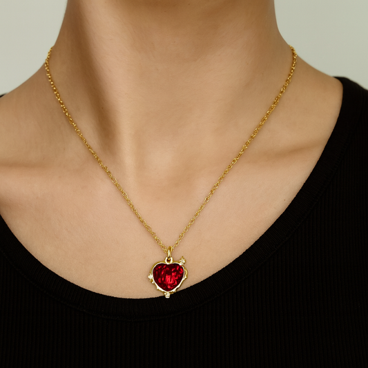 RUBY VEIL Halskette mit rotem Herz, Gold