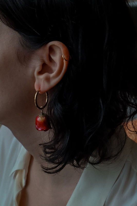 ROSEWATER Creolen mit rotem Rosen-Charm, goldfarben