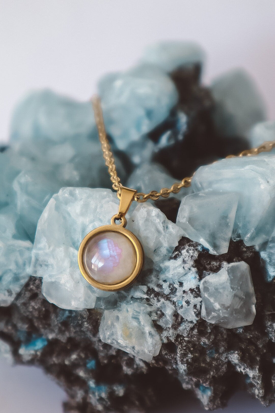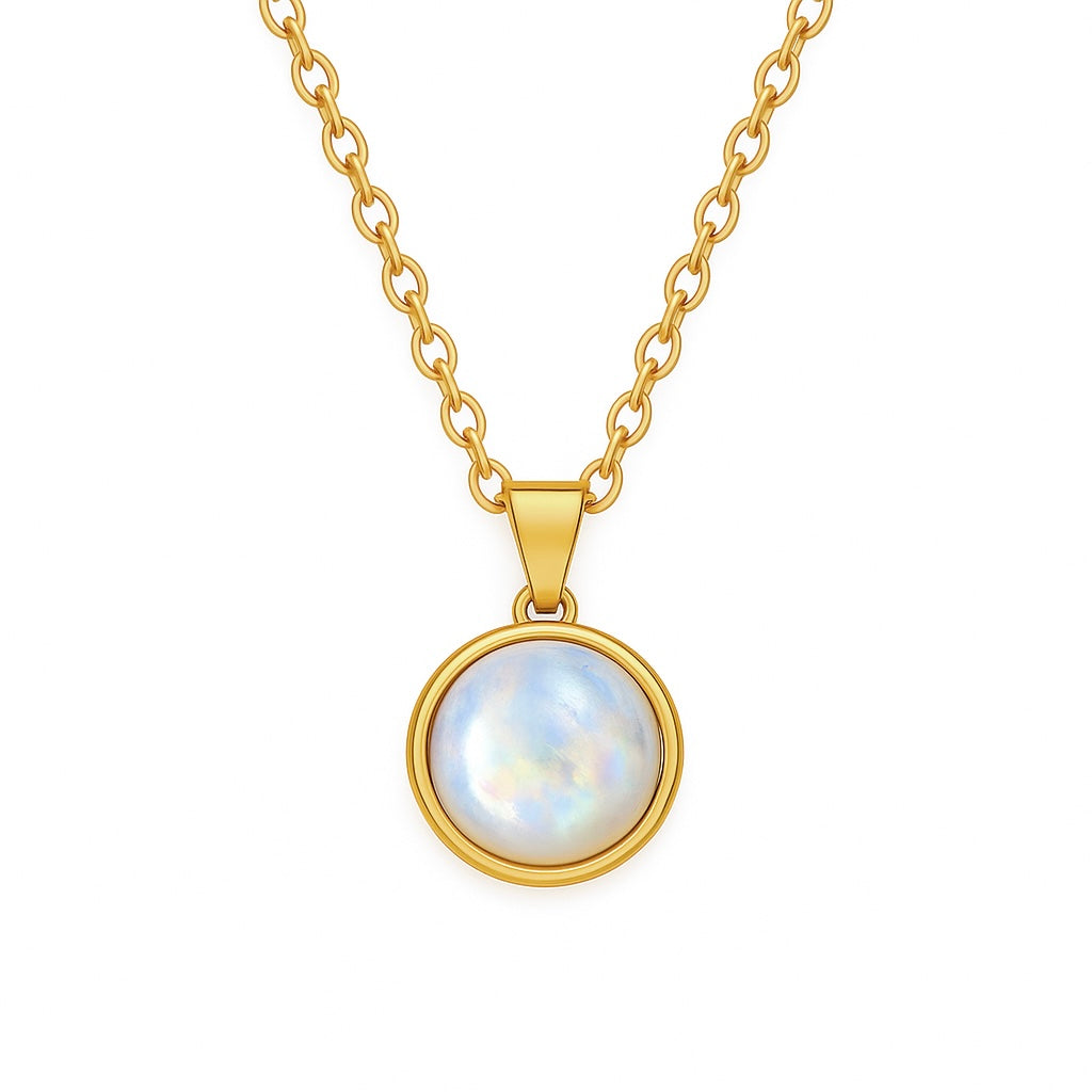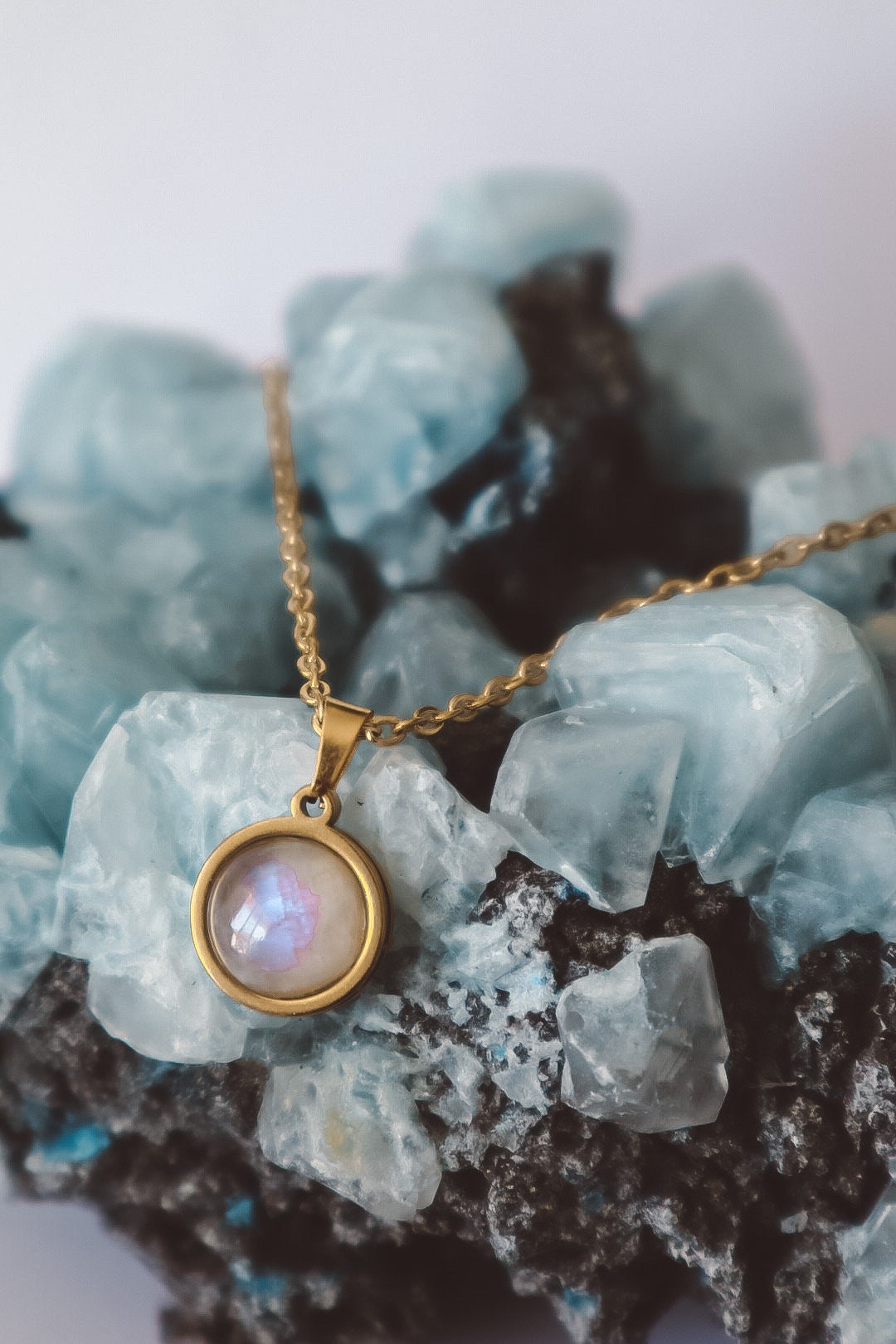 DAYA Halskette mit Regenbogen-Mondstein-Anhänger, Gold