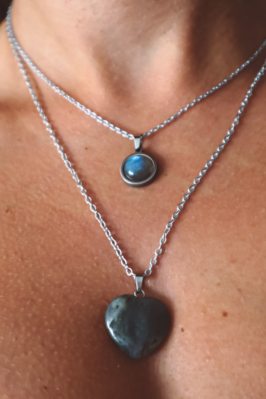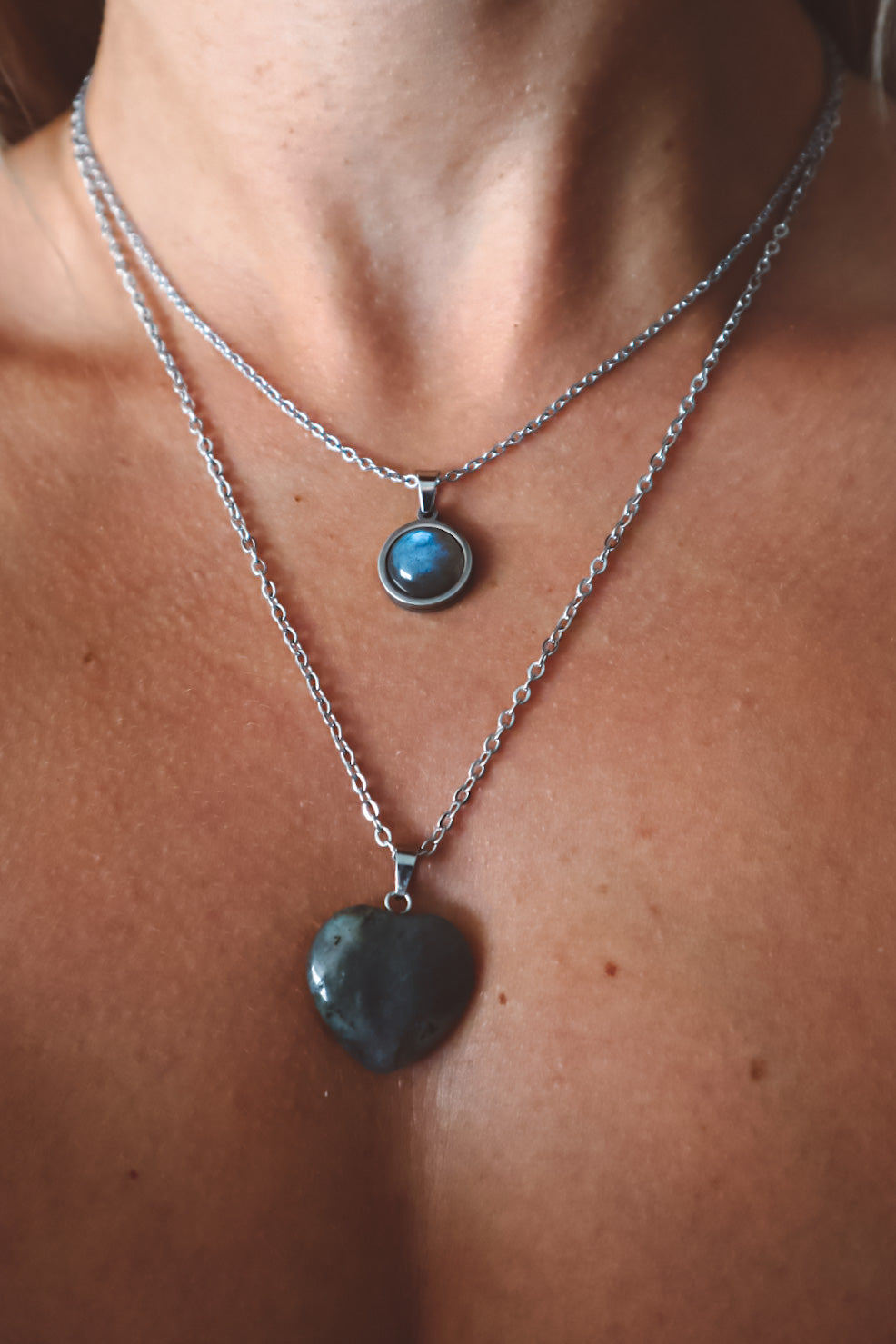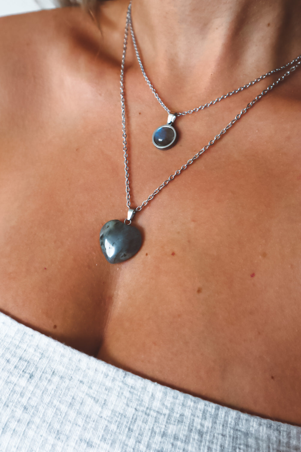 Labradorit-Herz-Anhänger-Halskette – Silber