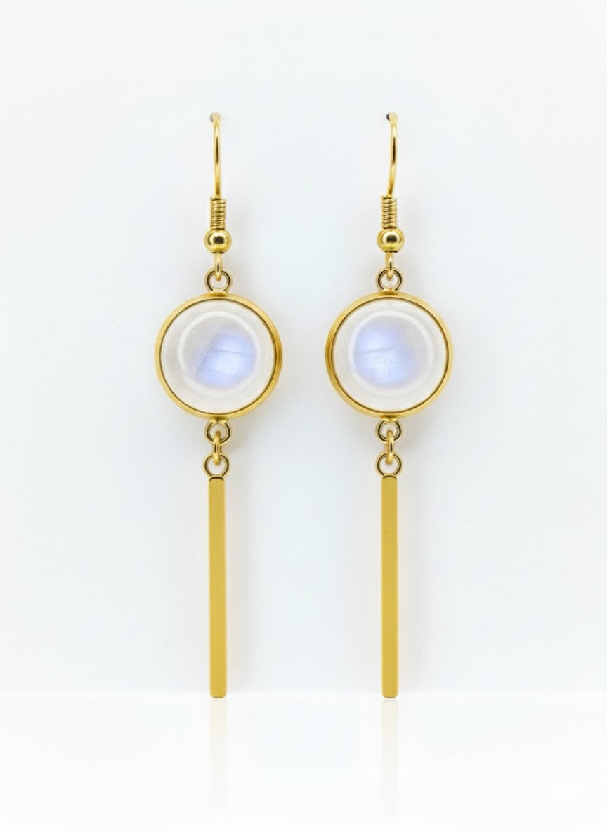 Regenbogen-Mondstein-baumelnde Ohrringe Gold