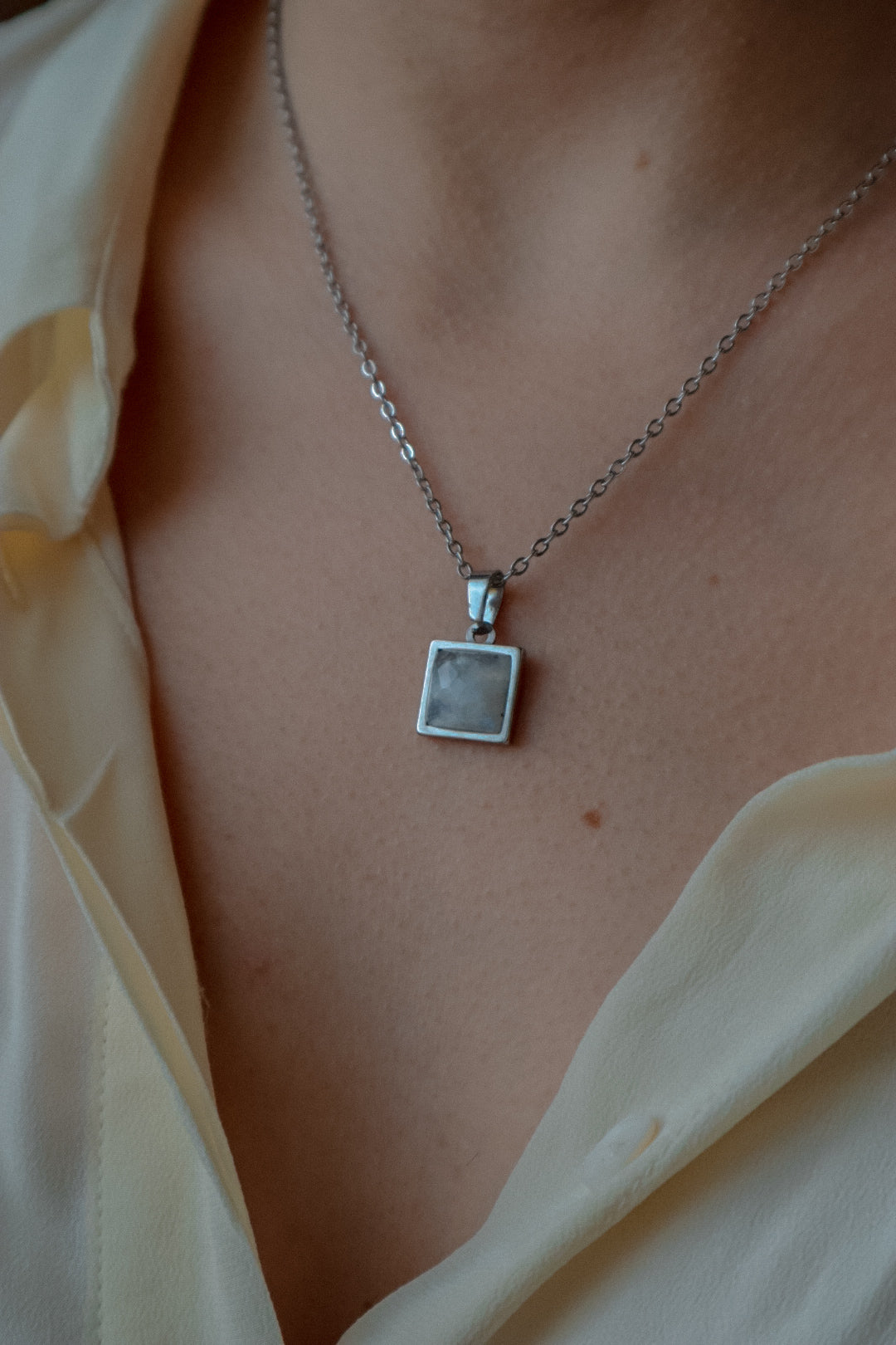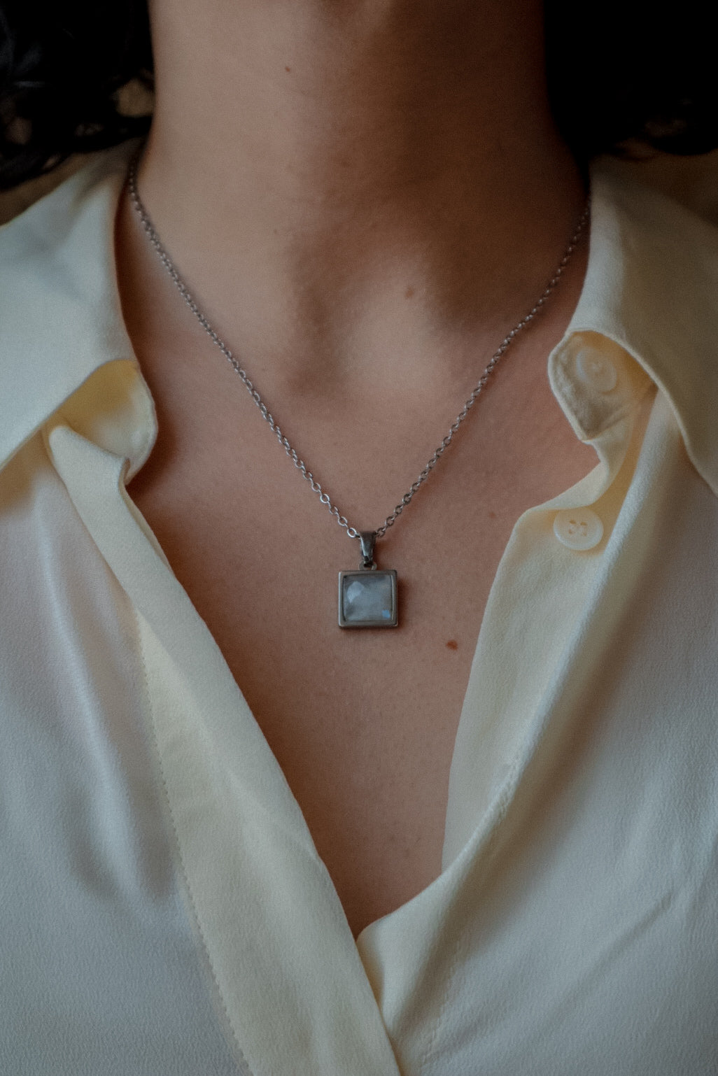 VARG Regenbogen-Mondstein-Quadrat-Halskette, Silber