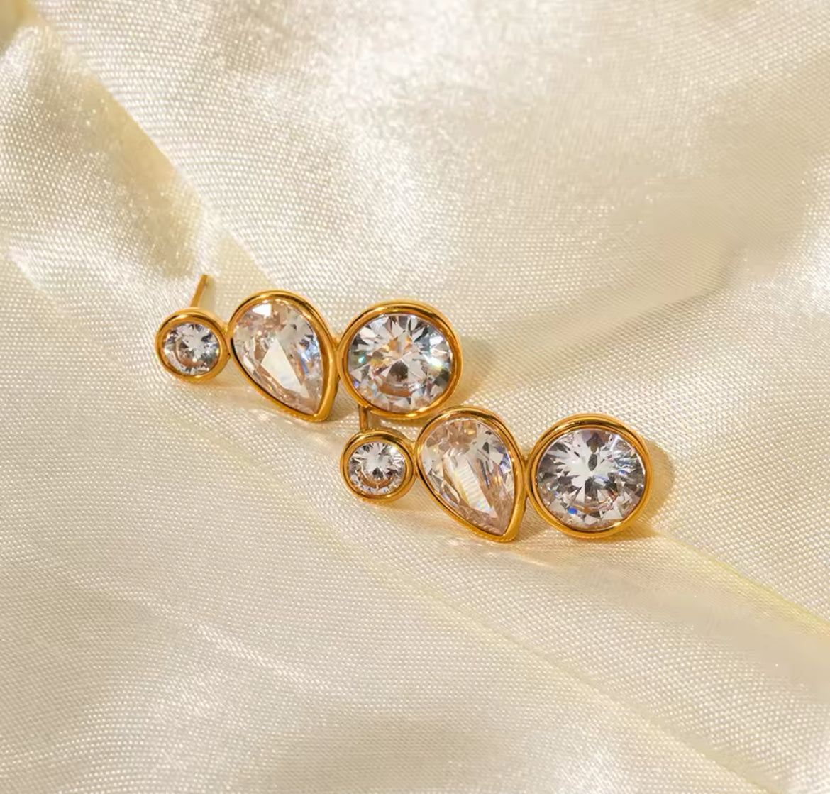 Material : Hergestellt aus glänzendem, goldfarbenem Edelstahl und Zirkonsteinen für dauerhafte Eleganz.