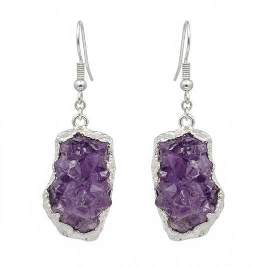 AMARA Raw Amethyst Cluster Dangle Charm Earrings Silver