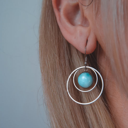 ANETHA Blue Larimar Dangle Hoop Earrings Silver