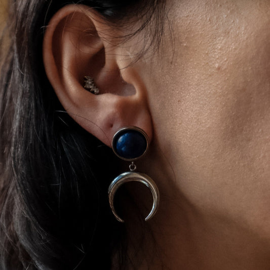 ANUK Lapis Lazuli Stud Crescent Moon Earrings Silver