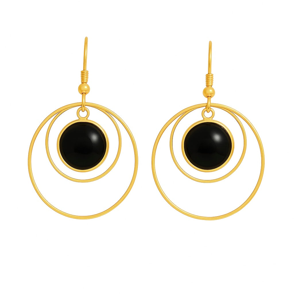 ANETHA Black Onyx Dangle Hoop Earrings Gold