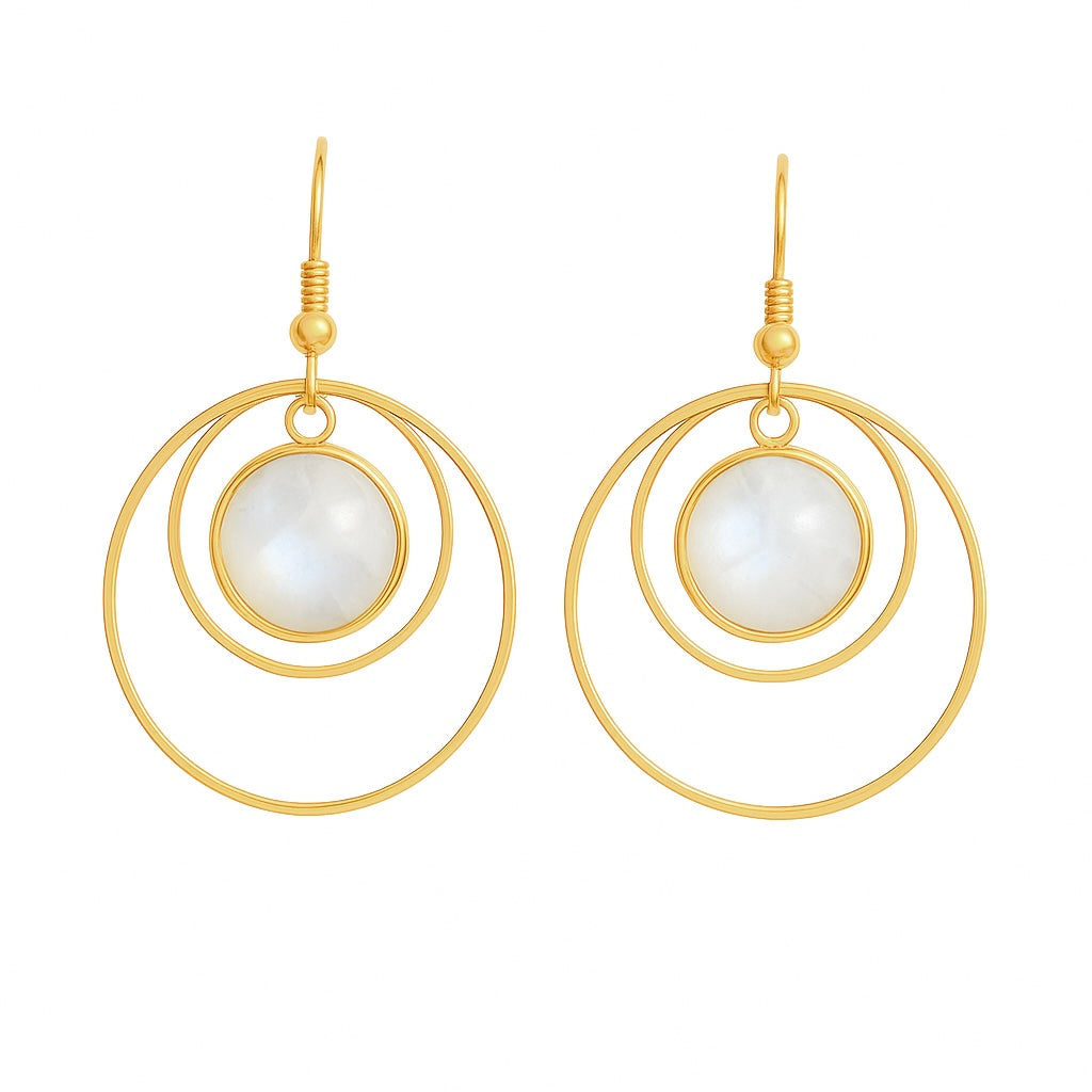ANETHA Rainbow Moonstone Dangle Hoop Earrings Gold