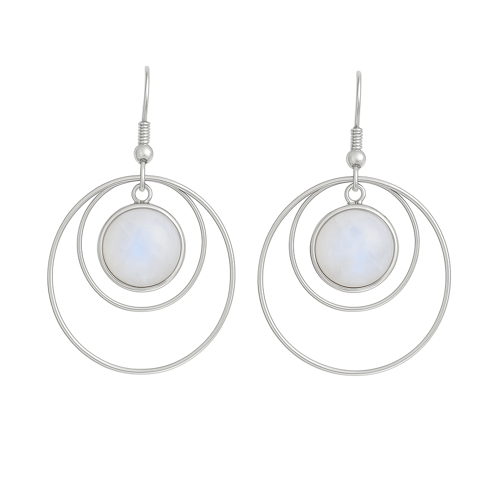 ANETHA Rainbow Moonstone Hoop Earrings Silver