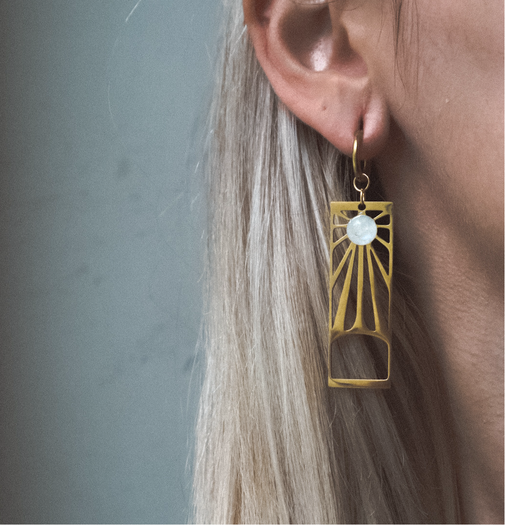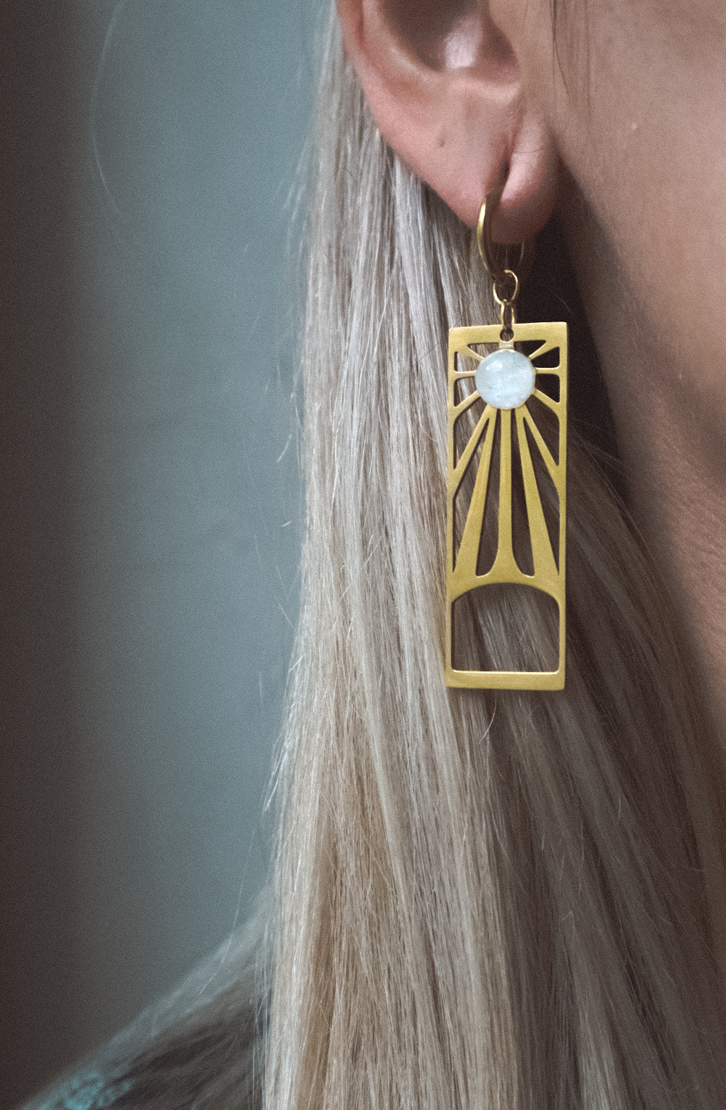 SUNRISE Moonstone Dangle Charm Earrings Gold
