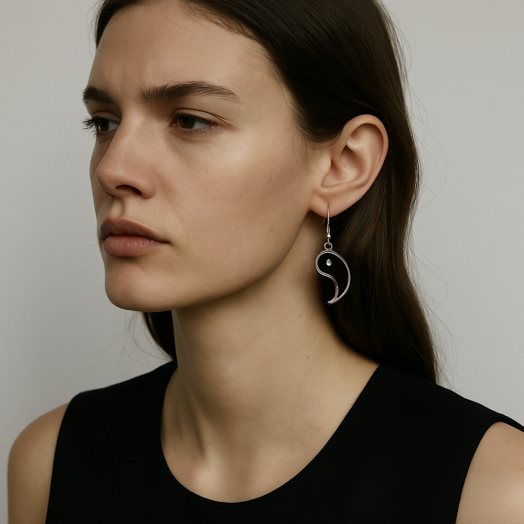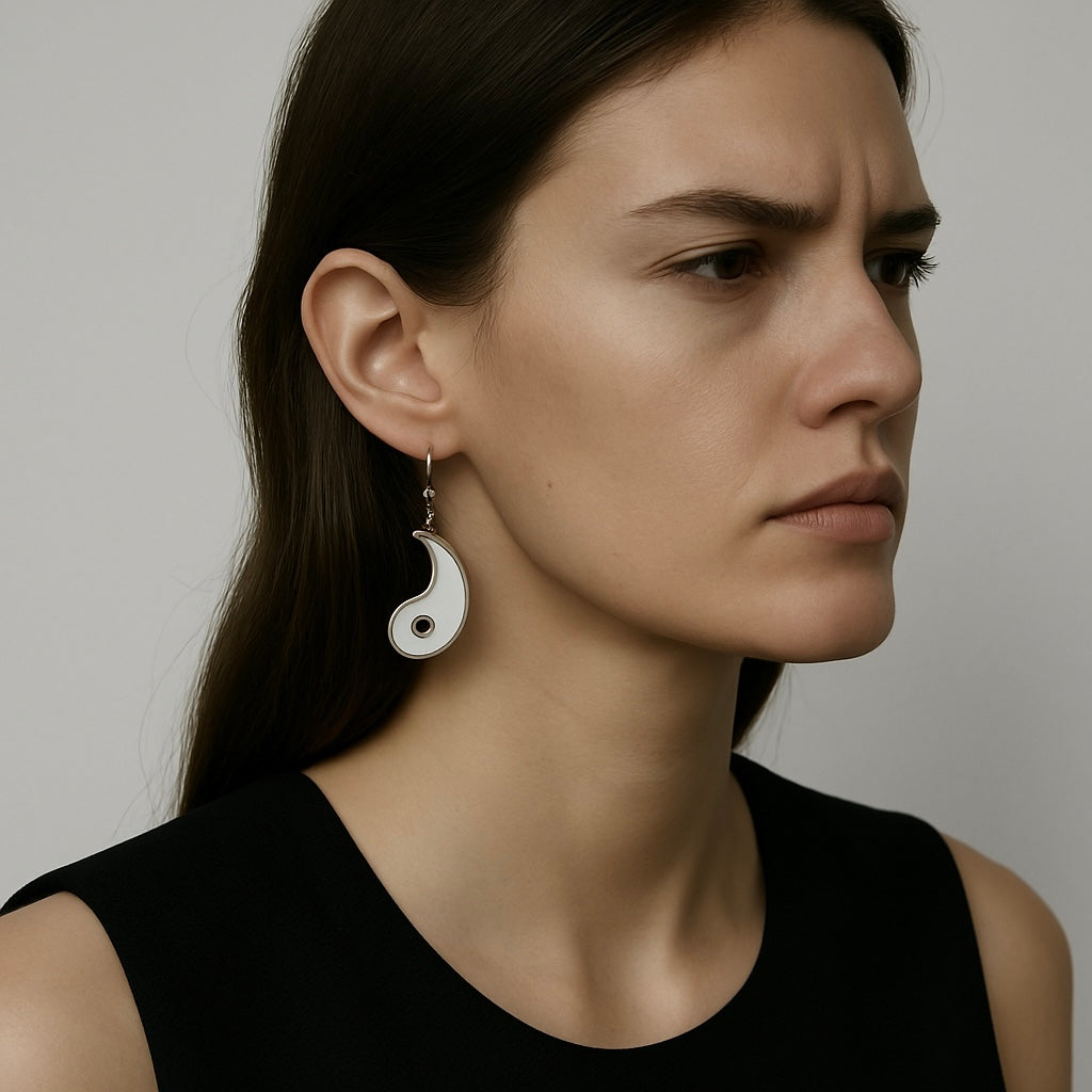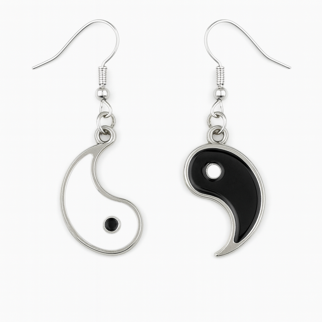 925 Silver Ear Wire or 925 Silver Leverback option Mismatched charm earrings featuring silver plated zinc alloy based yin and yang charms.