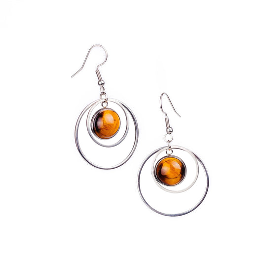 Boucles d'Oreilles Créoles Oeil de Tigre ANETHA Argent