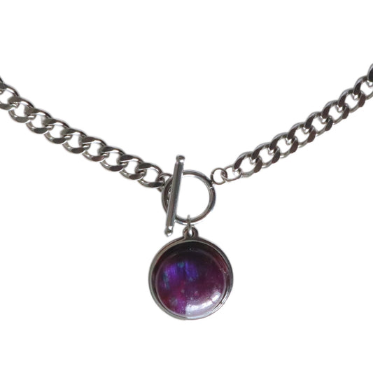 Collier à chaîne cubaine AMNAYA en labradorite violette et argent
