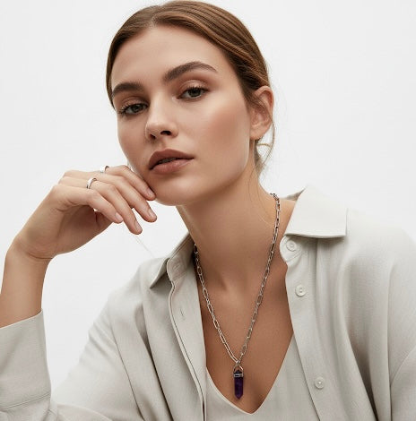 ECLIPSE Rose Quartz Point Paperclip Chain Necklace Silver