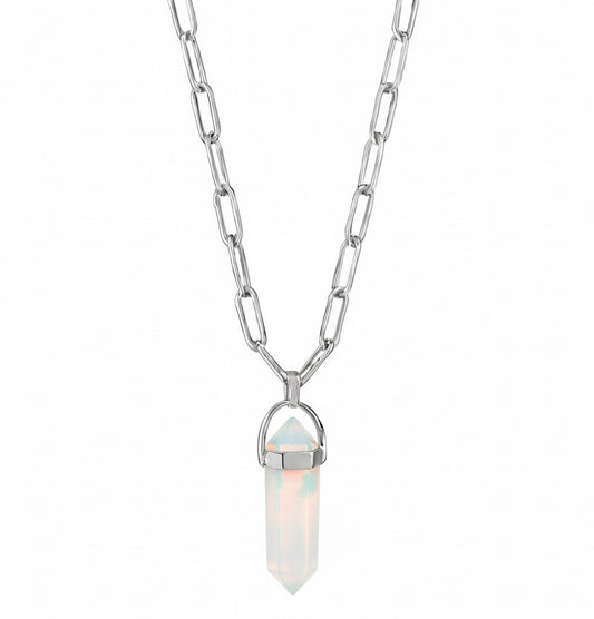 ECLIPSE Opalite Point Paperclip Chain Necklace Silver
