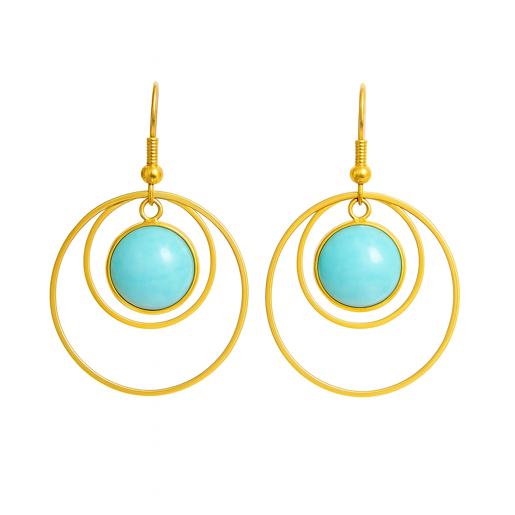 Boucles d'oreilles créoles pendantes ANETHA en larimar bleu et or