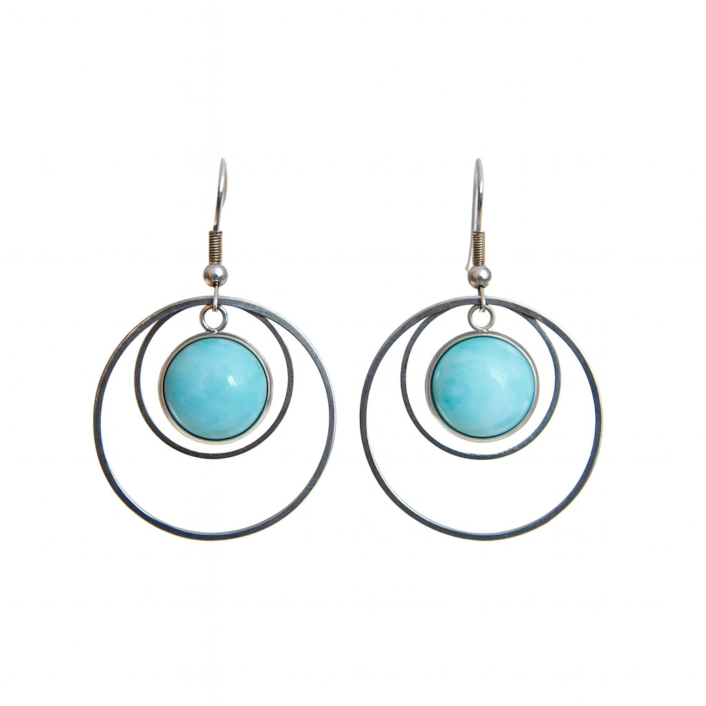 Boucles d'oreilles créoles pendantes ANETHA en argent et larimar bleu