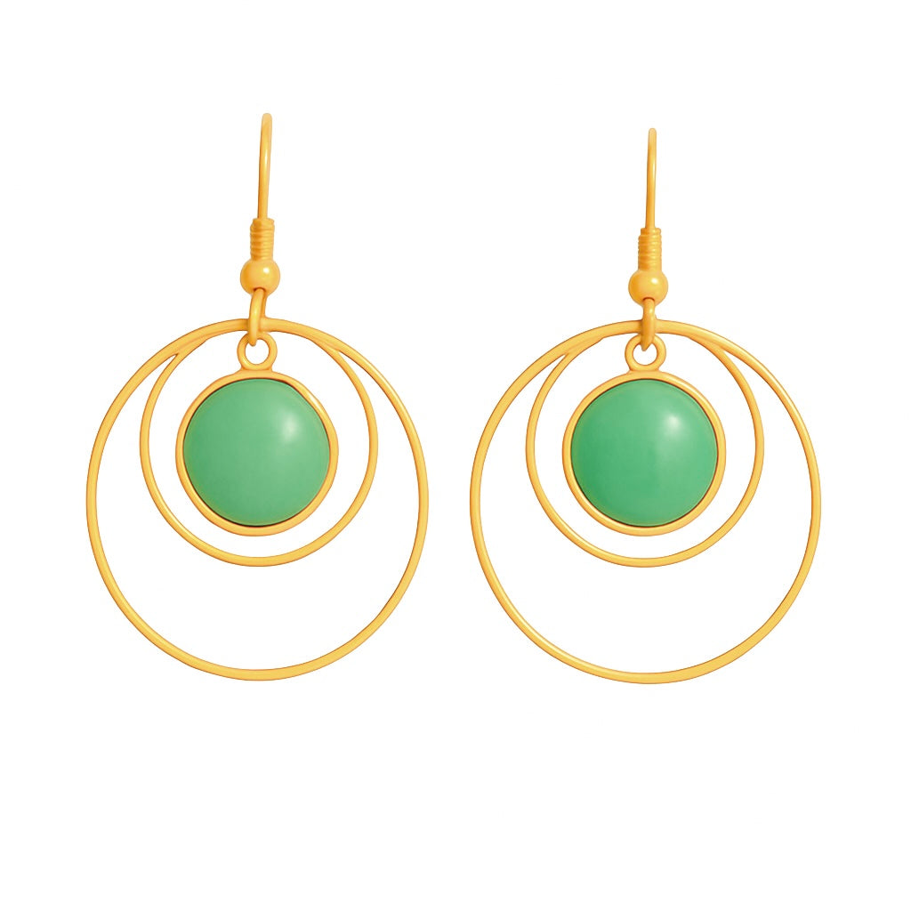 L'équilibre céleste rencontre le renouveau terrestre avec les créoles ANETHA. Fabriquées à la main en acier inoxydable et plaquées or 18 carats PVD, chaque boucle d'oreille encadre une aventurine verte sereine de 12 mm au centre d'un élégant double anneau, évoquant les cycles éternels de la nature. Légères et élégantes, leur fermoir à crochet assure confort et facilité de port, tandis que leur conception étanche et hypoallergénique préserve leur éclat durable.