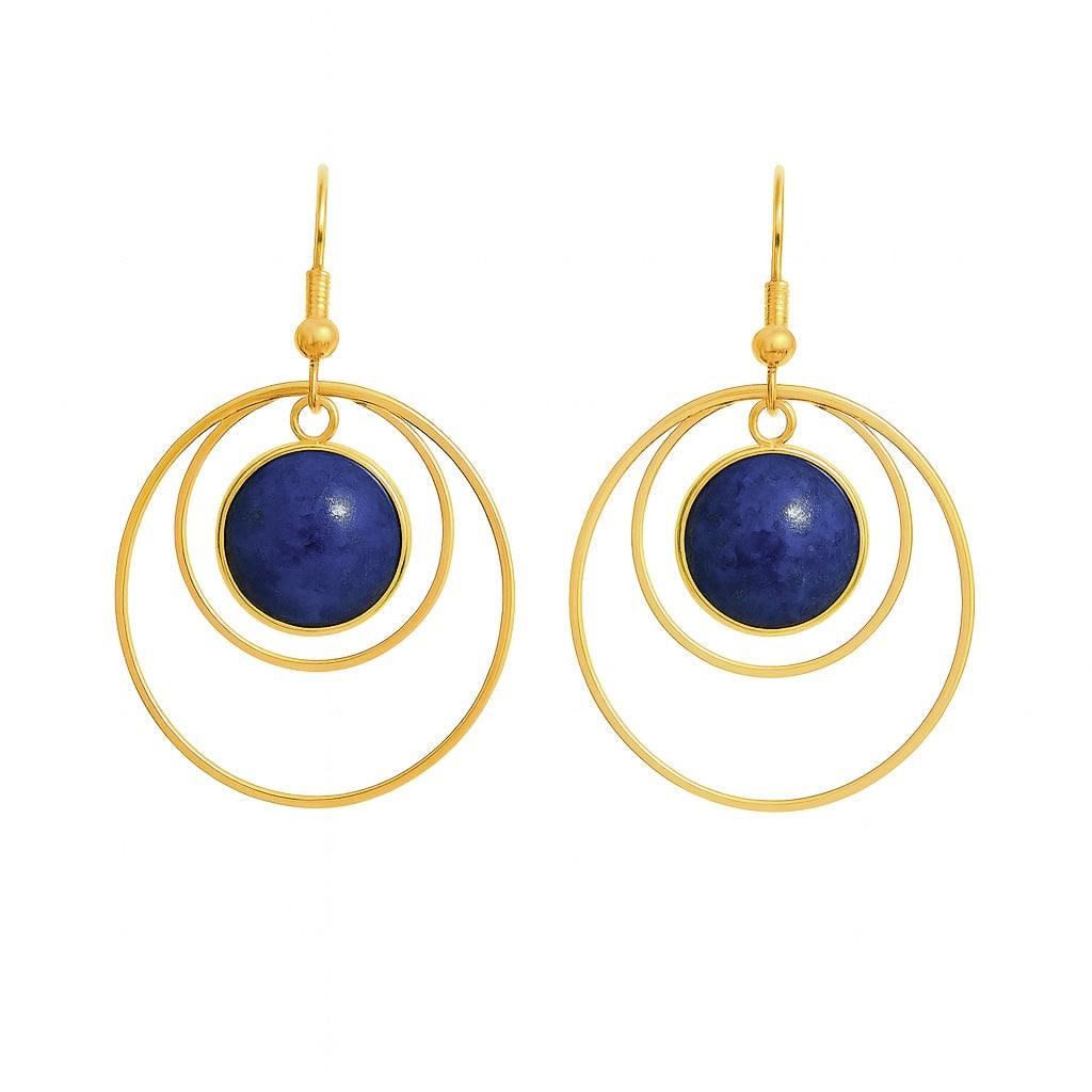 Boucles d'oreilles créoles pendantes ANETHA en lapis-lazuli et or