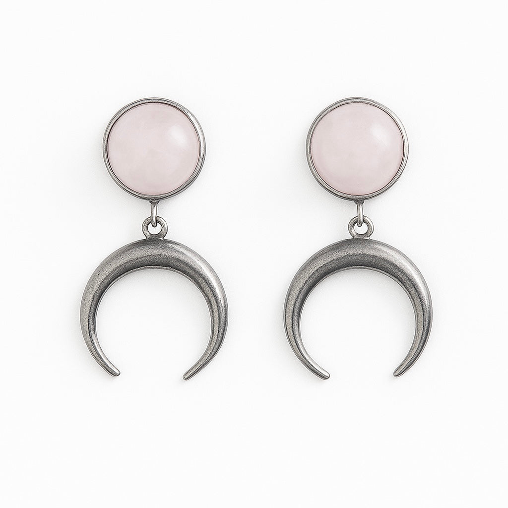 Boucles d'oreilles à breloques croissant de lune en quartz rose ANUK en argent