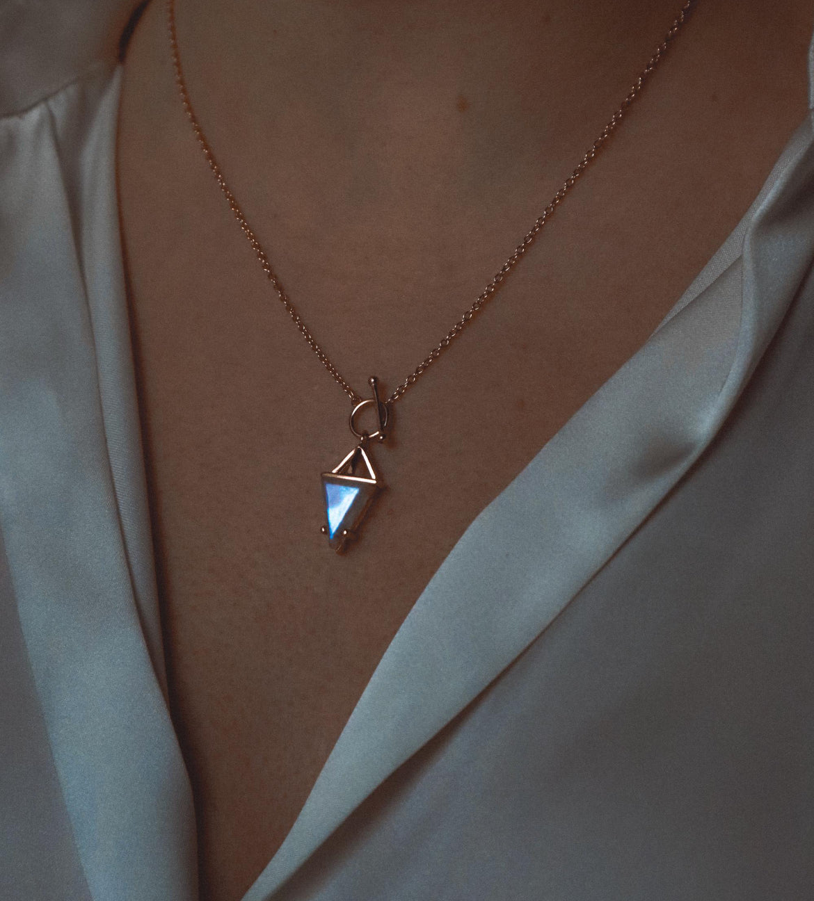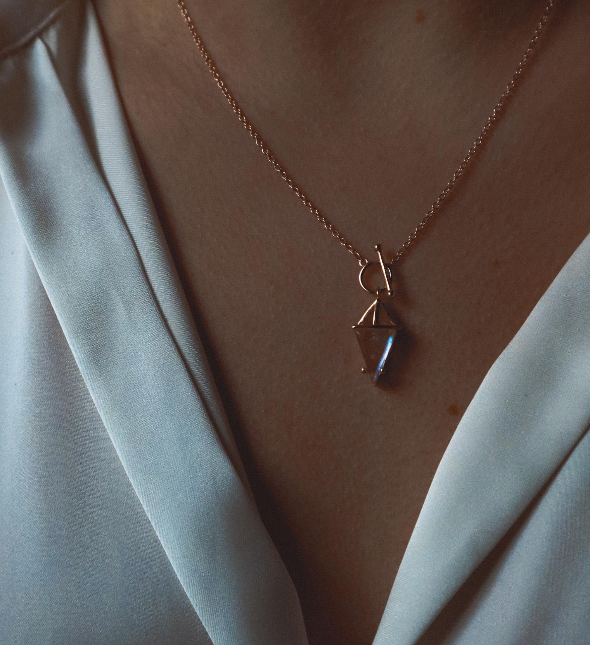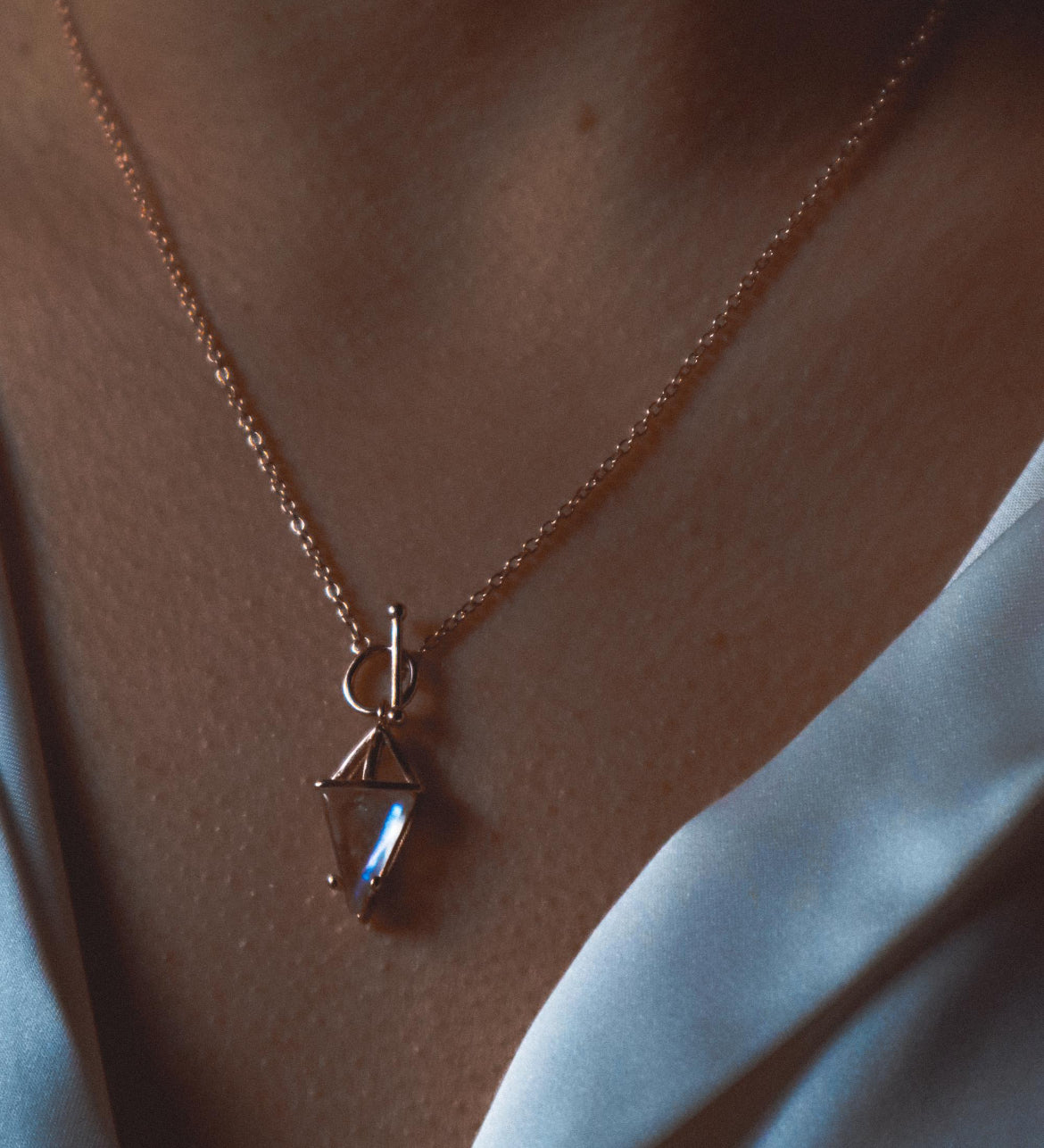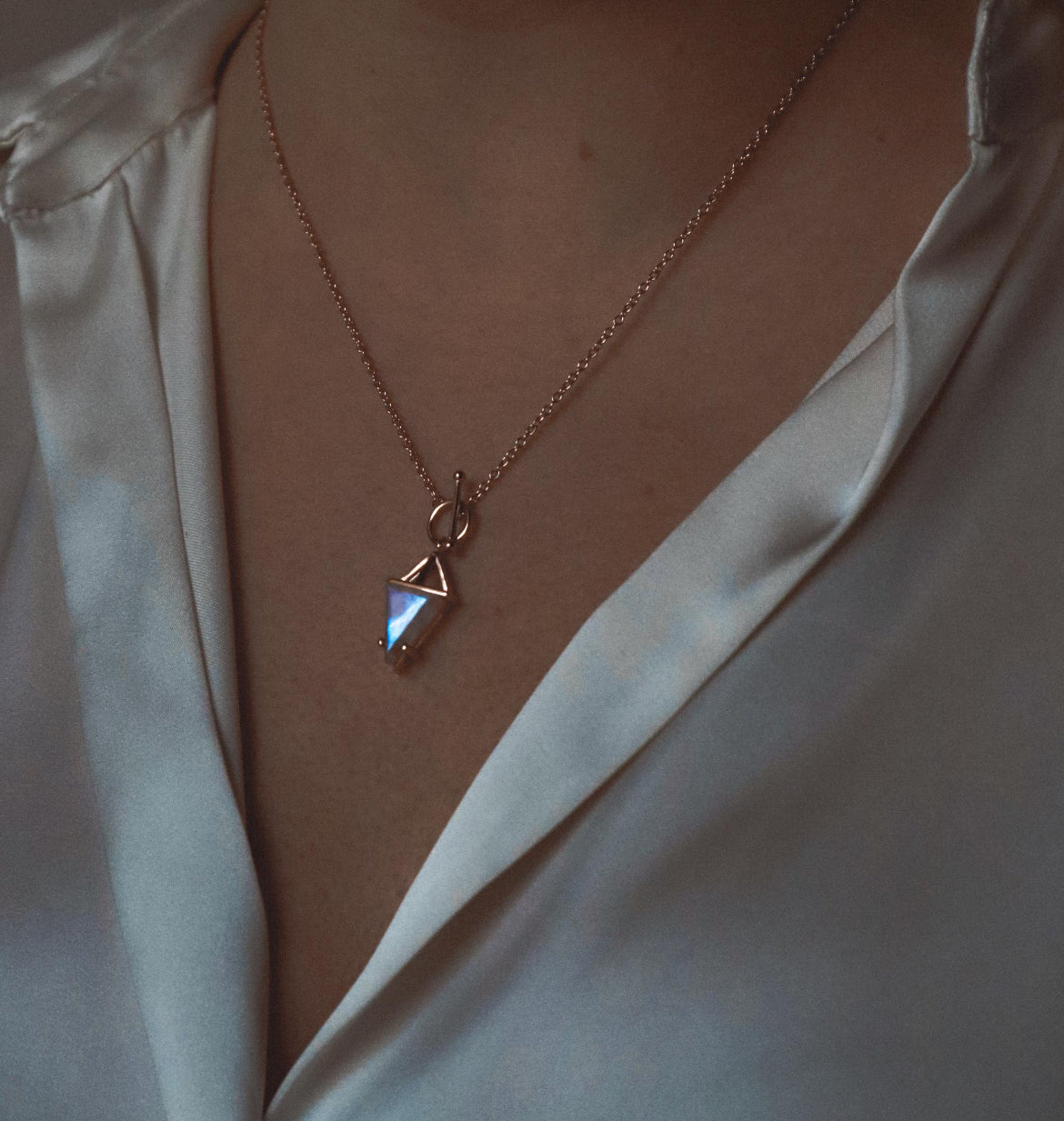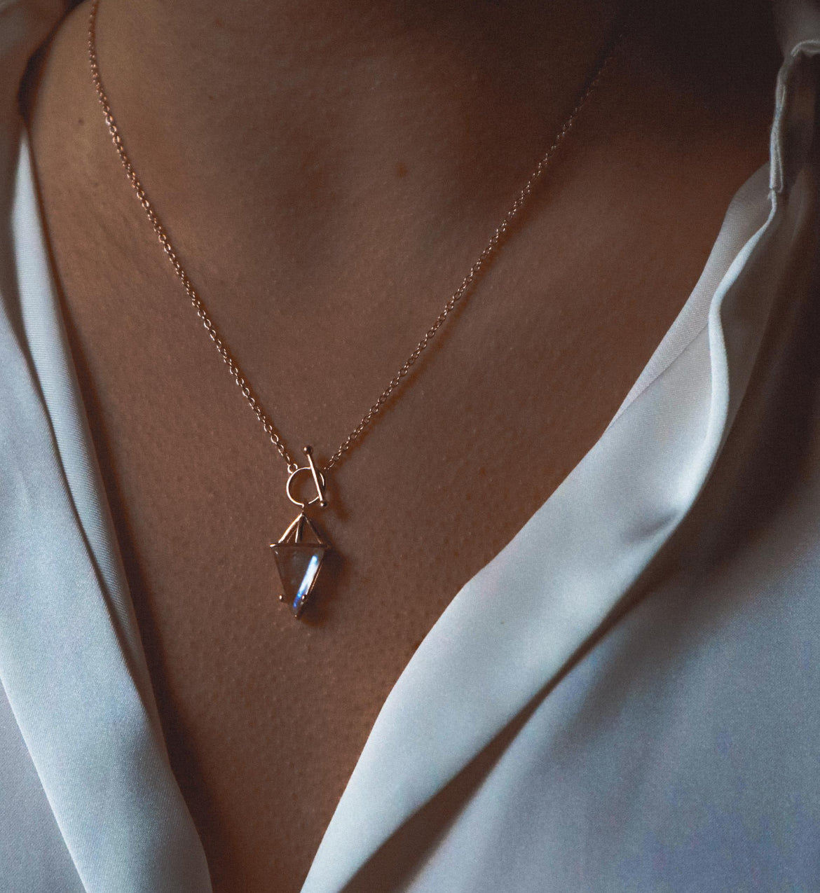 KALI Moonstone Pencil T Lock Collier Or Rose Argent 925