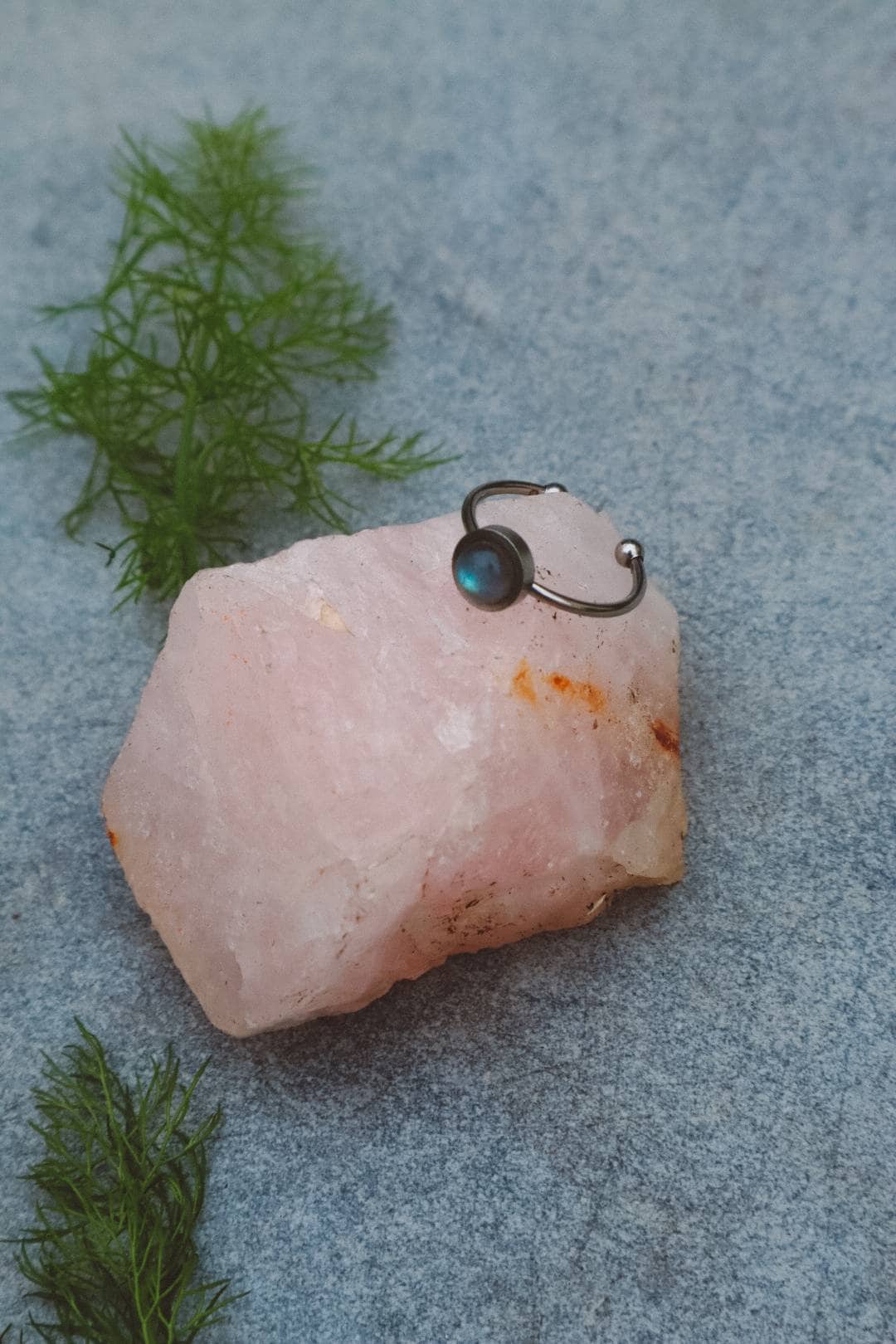 La bague est ornée d'un cristal de labradorite rond poli de qualité AAA de 6 mm de diamètre.