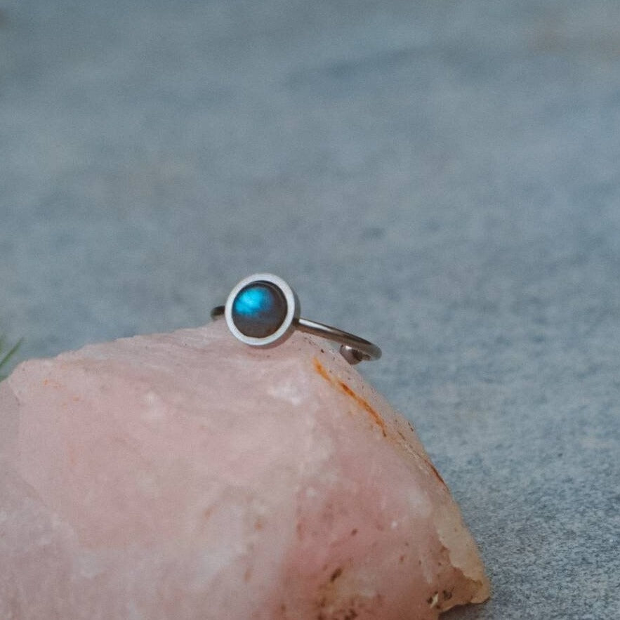 Bague Minimale Labradorite Bleue - Argent