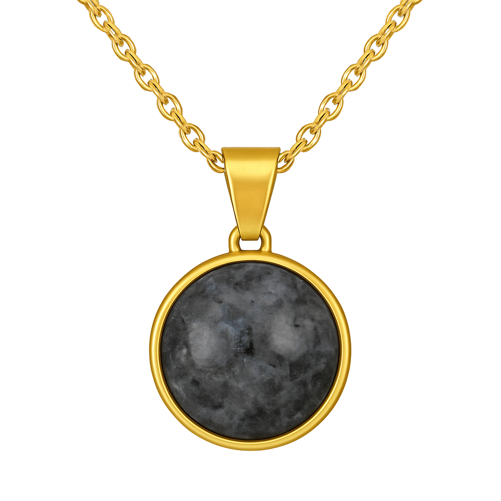Talisman d'ancrage et de clarté intérieure, ce collier pendentif arbore la beauté mystérieuse de la larvikite, pierre de transformation, de protection et de sagesse ancestrale. Sa surface sombre et changeante révèle des éclats de lumière cachée, évoquant la façon dont l'intuition émerge du silence.