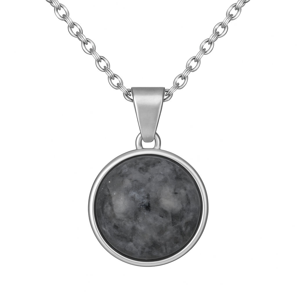 Mystérieux et magnétique, le pendentif en larvikite en argent est une pièce intemporelle conçue pour ancrer et protéger. Surnommée la « pierre de lune norvégienne », la larvikite scintille de tons naturels noirs, gris et argentés, révélant parfois des reflets irisés, écho visuel de sa puissante énergie métaphysique.