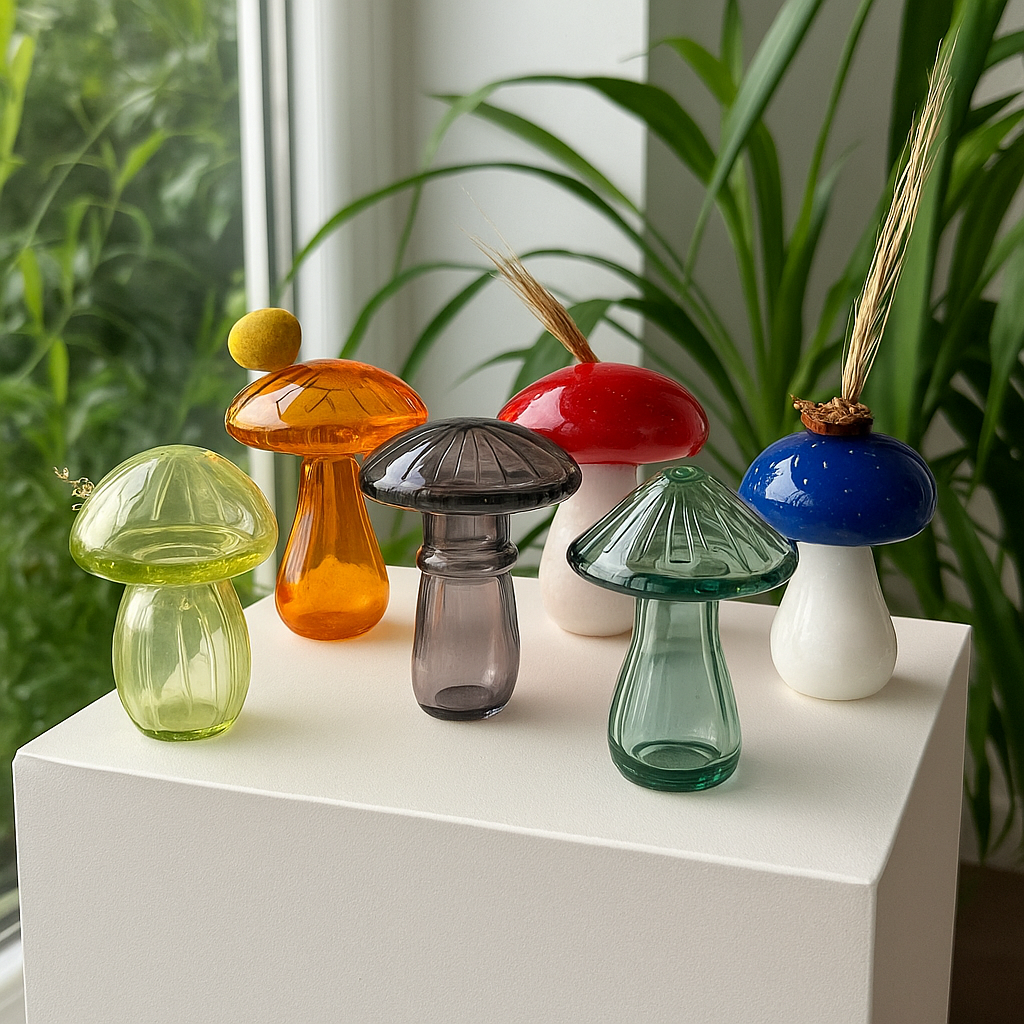 Présentation du ravissant vase en verre à décor de champignons, une pièce maîtresse unique et artistique qui apporte une touche de beauté inspirée de la nature à votre espace de vie. Ce vase en verre est conçu en forme de charmant champignon, ajoutant un élément fantaisiste et charmant à n'importe quelle pièce.