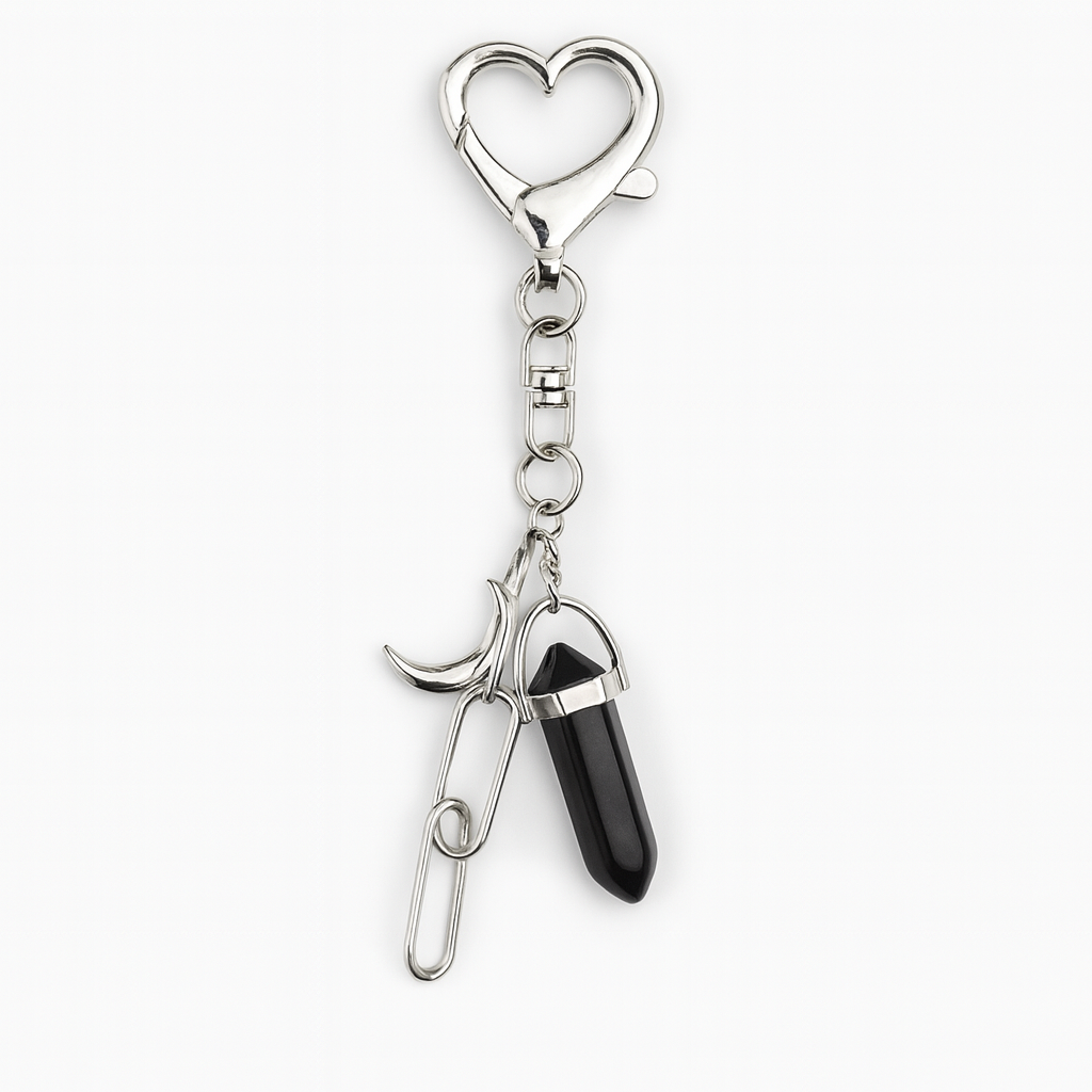 Mystérieux et céleste, le charm Noctis incarne la magie du ciel nocturne en un seul bijou. D'un fermoir en forme de cœur jaillit un trio d'éléments : une pointe de grès bleu poli qui scintille comme des étoiles lointaines, une élégante chaîne trombone pendante qui apporte mouvement et audace, et un délicat charm croissant de lune qui scintille d'une puissance discrète. Conçu pour s'accrocher à un collier, un bracelet ou un sac, ce charm est une déclaration d'élégance et de mysticisme, parfait pour celles qui portent la nuit en elles.