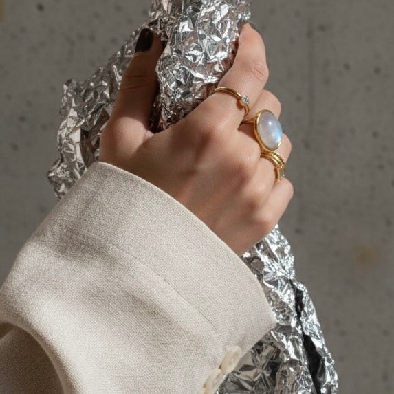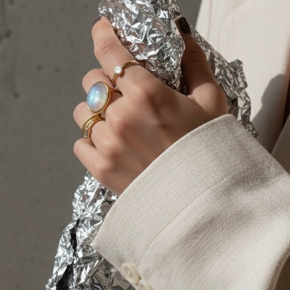 Bague de déclaration en pierre de lune arc-en-ciel - Or