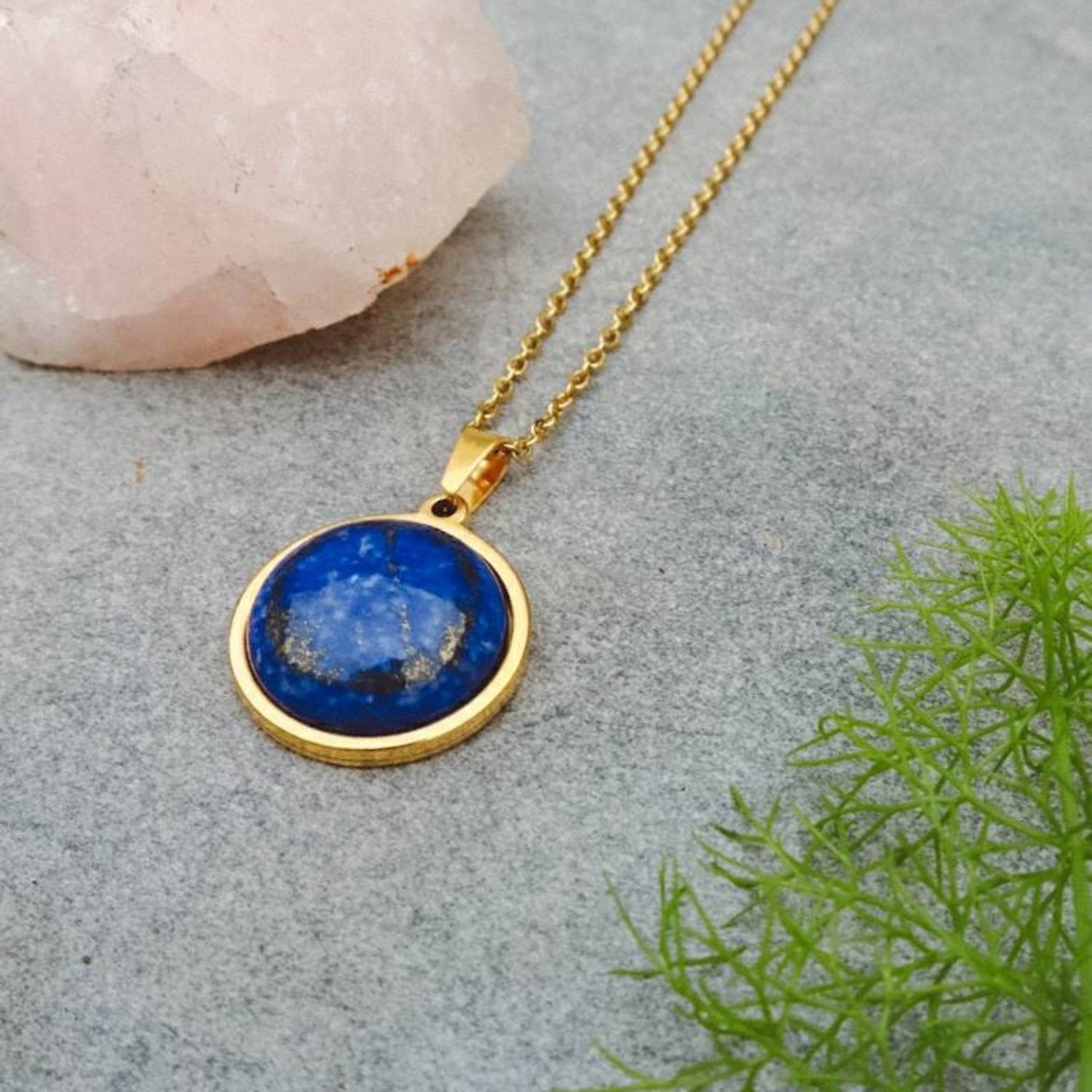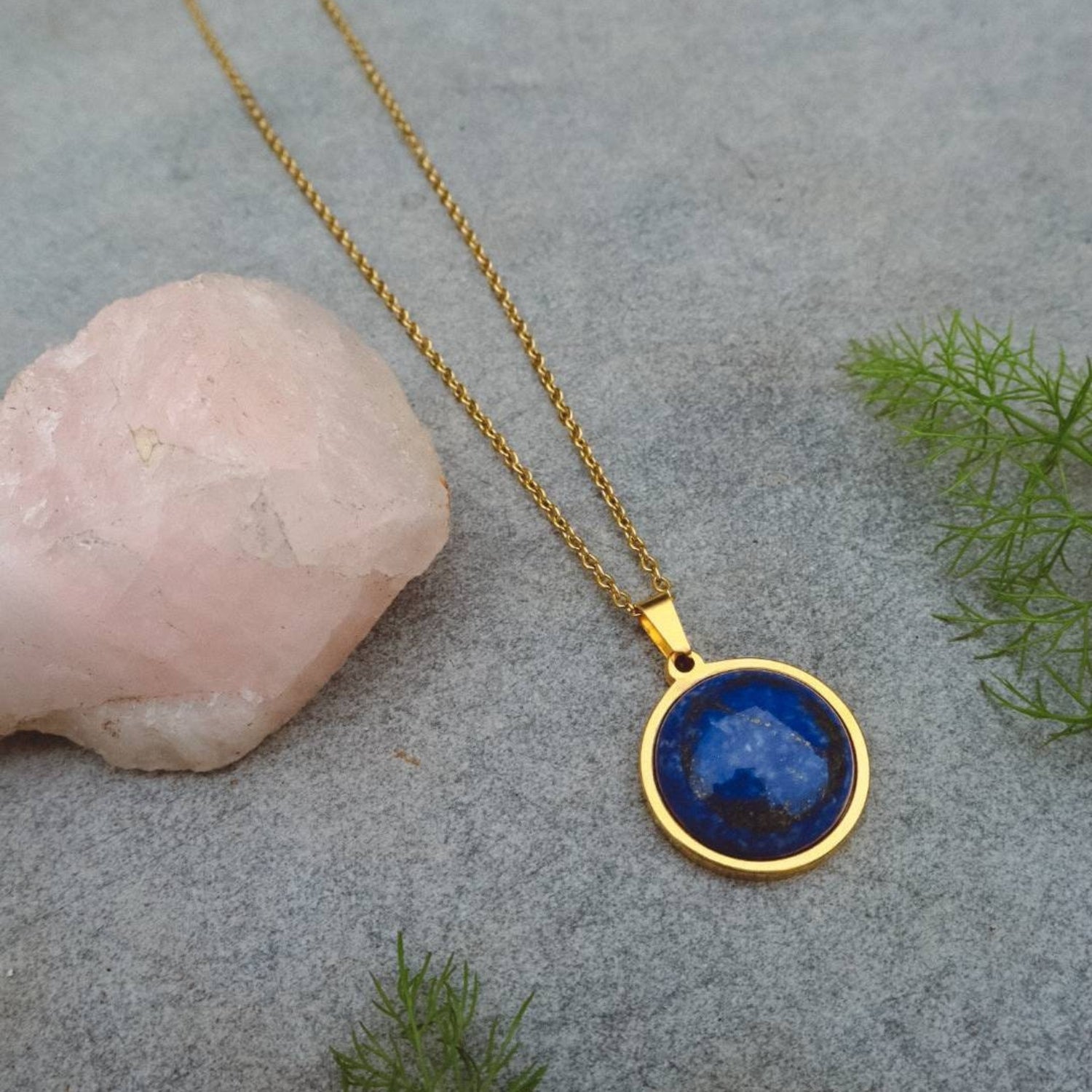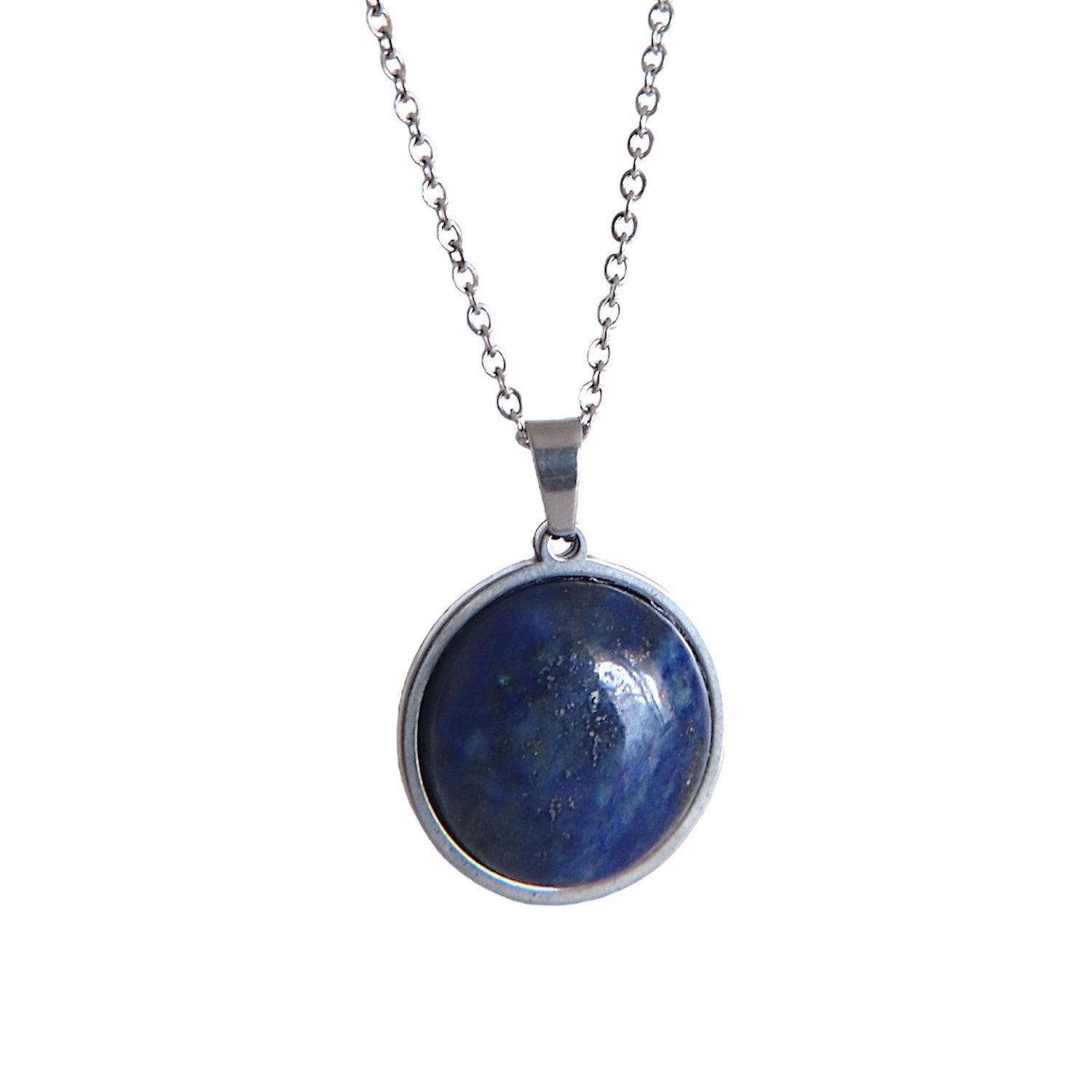 Un collier saisissant orné d'un lapis-lazuli poli et éclatant de 20 mm, serti dans un pendentif en acier inoxydable argenté. Ce bijou allie simplicité élégante et profonde signification mystique. Suspendu à une chaîne robuste en acier inoxydable argenté de 2 mm, sa longueur est réglable pour un ajustement parfait et personnalisé. Le lapis-lazuli est vénéré comme une pierre de sagesse et de vérité, favorisant la croissance spirituelle, la paix intérieure et une communication claire. Ses vertus protectrices protègent contre la négativité, faisant de ce collier un accessoire précieux et intemporel.