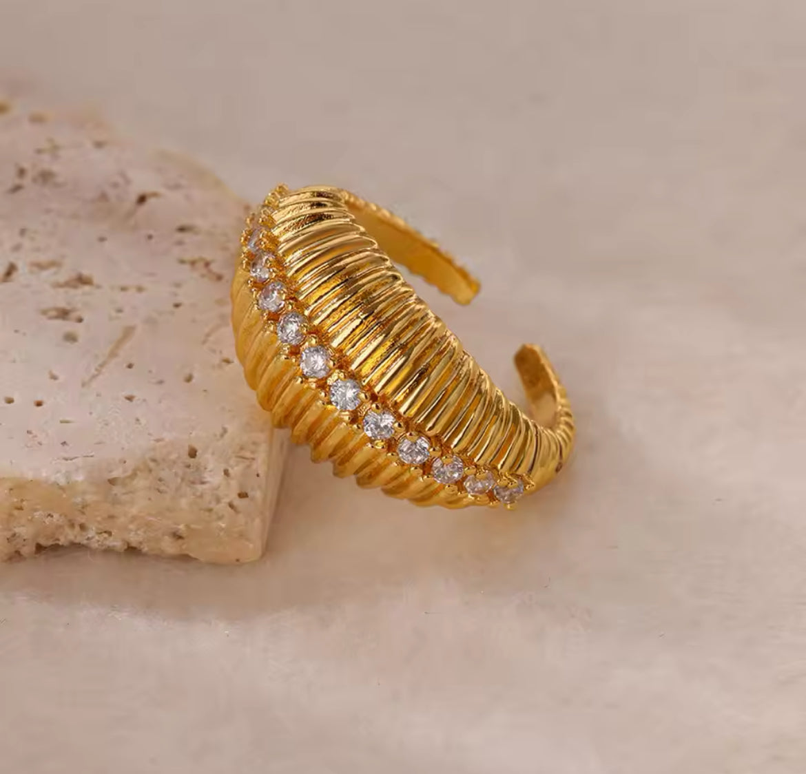 Finition dorée de haute qualité : Fabriquée en acier inoxydable et plaquée or brillant, la bague SIMONA allie à la perfection durabilité et luxe. Ses propriétés imperméables et hypoallergéniques garantissent confort et résistance, la rendant idéale au quotidien.