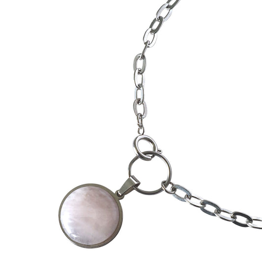 AURA Rose Quartz Horn O Ring Wheat Chain Choker Silver