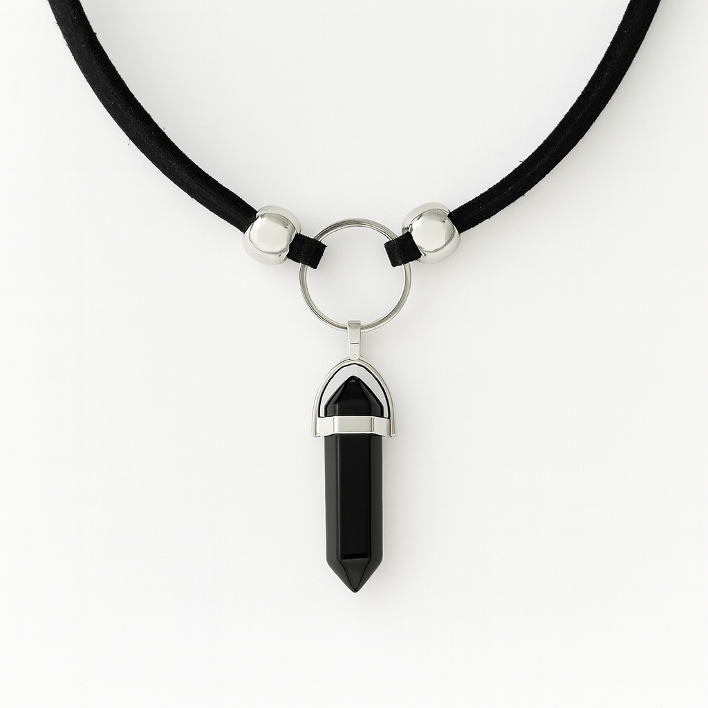 The highlight of this choker is the O-ring, which is adorned with a gorgeous gemstone point charm that dangles gracefully from the center. We offer a variety of gemstone point charms to choose from, so you can select the perfect one to suit your style and personality. Whether you prefer amethyst, clear quartz, rose quartz, or any other gemstone, we have the perfect charm to complement your unique taste.