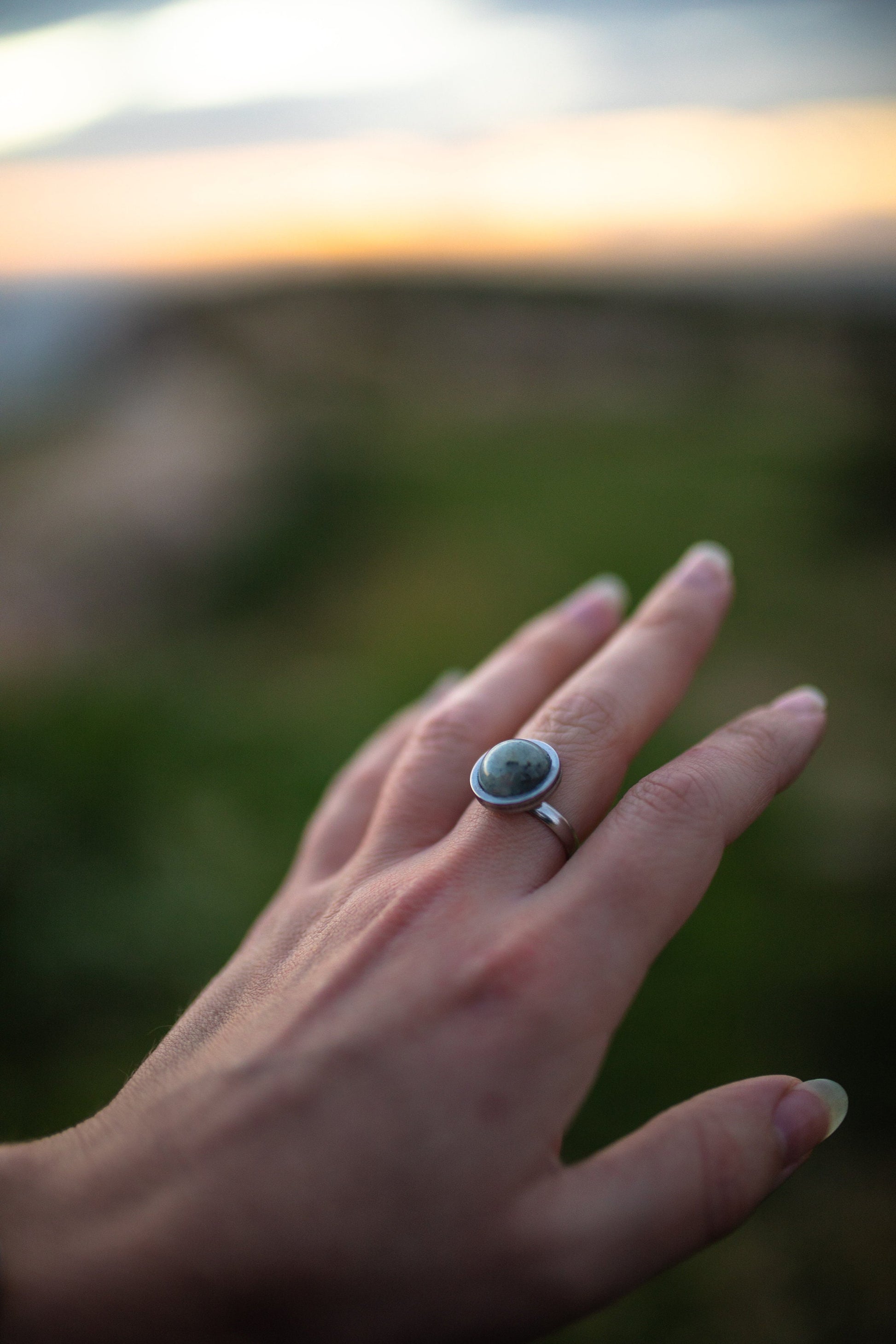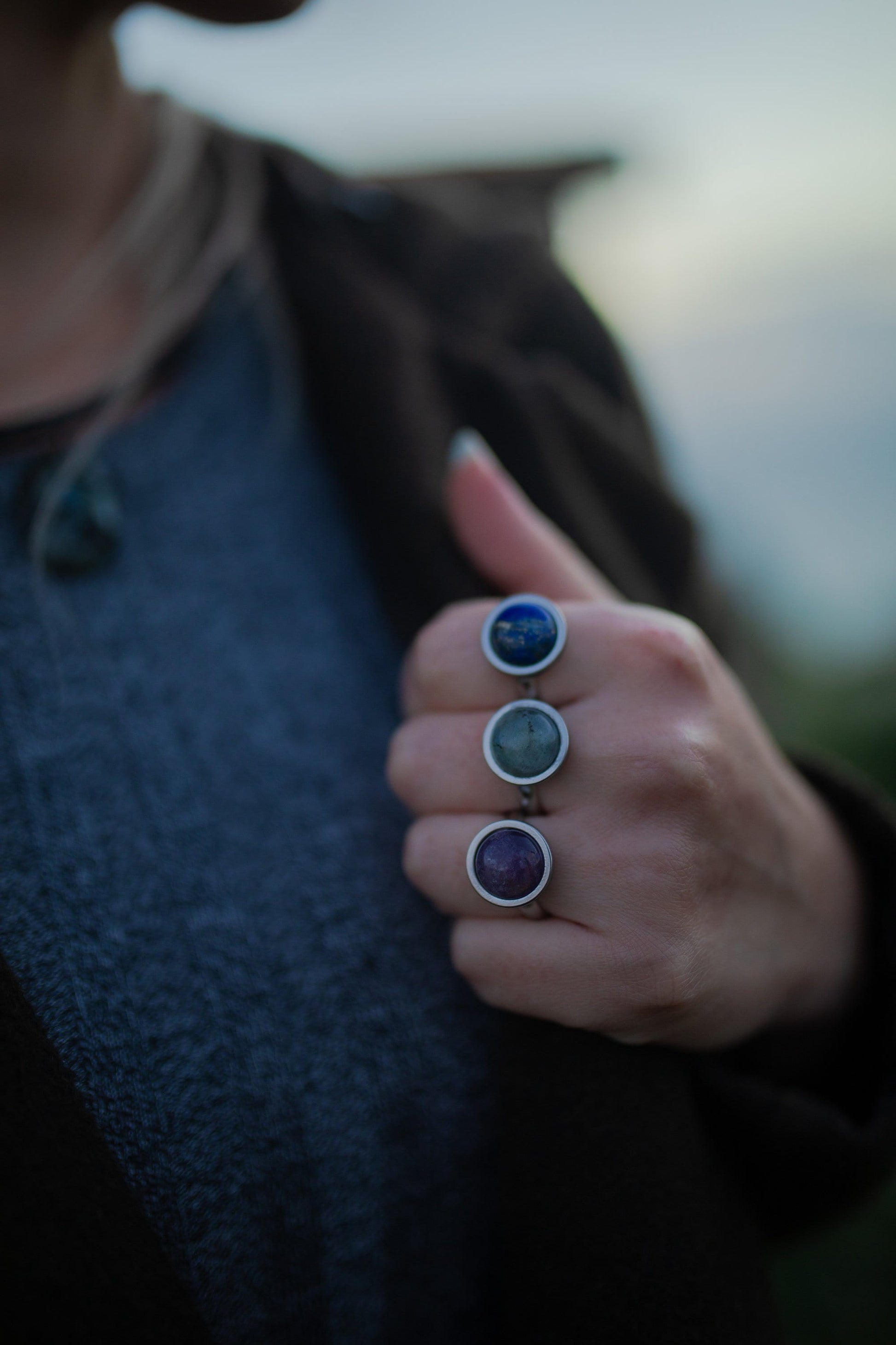 With its smooth stainless steel silver band and adjustable fit, this ring carries both intention and versatility. Handmade in Malta, it embodies the grounding energy of labradorite in a piece that is timeless, meaningful, and easy to wear every day.