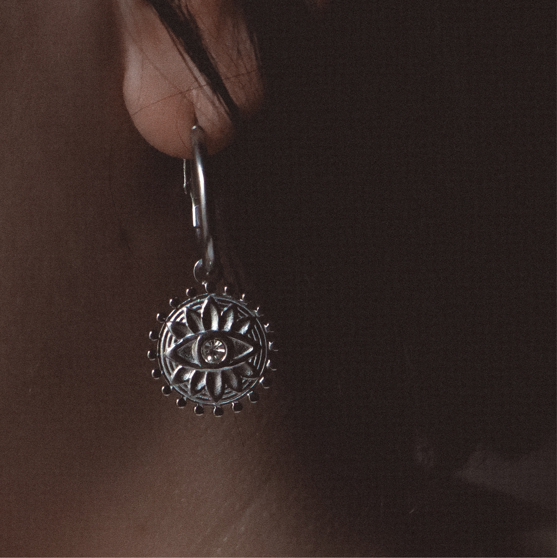 Introducing our NAZAR Earrings, where artistry intertwines with profound symbolism. Meticulously crafted from high-polish stainless steel, these earrings are available in both silver and gold finishes, offering a sleek and modern aesthetic to suit diverse styles.