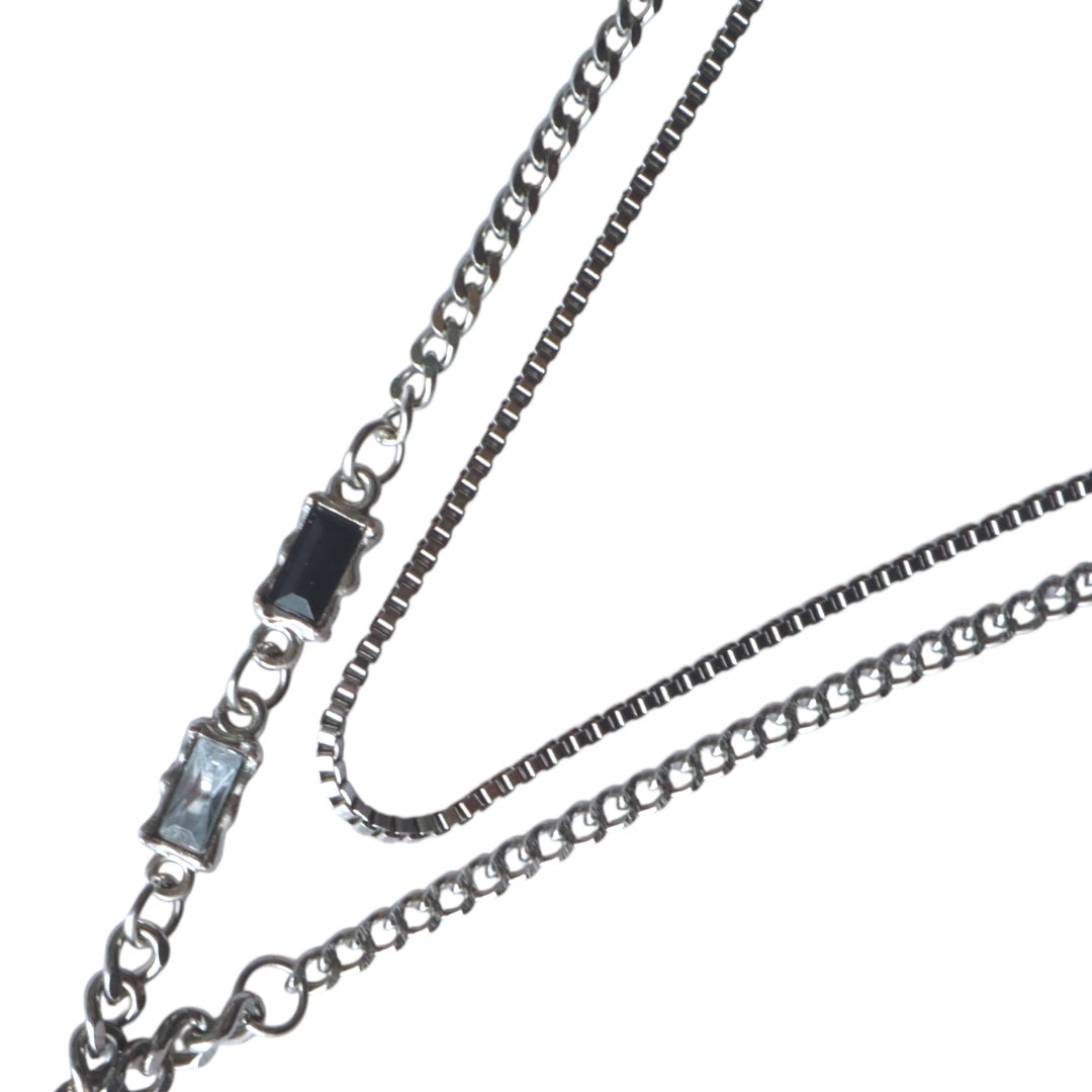 Second chain: mixed media stainless steel cable chain (22 inches) with embedded black and white rhinestones