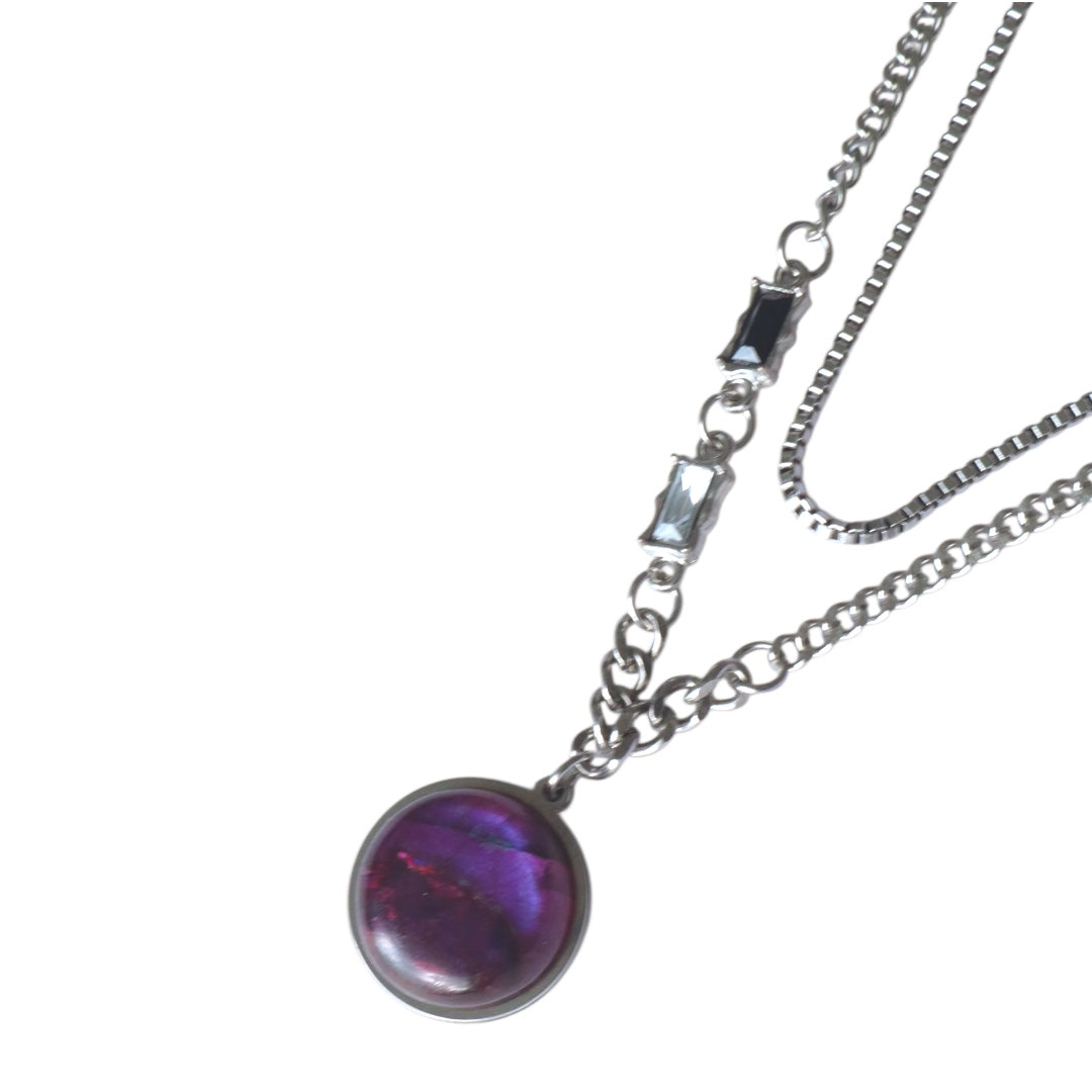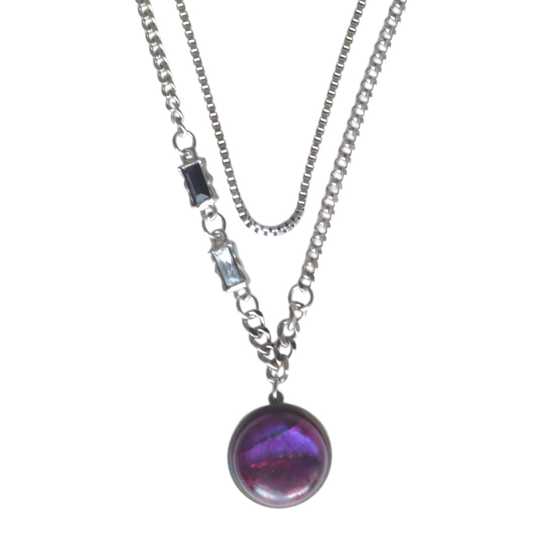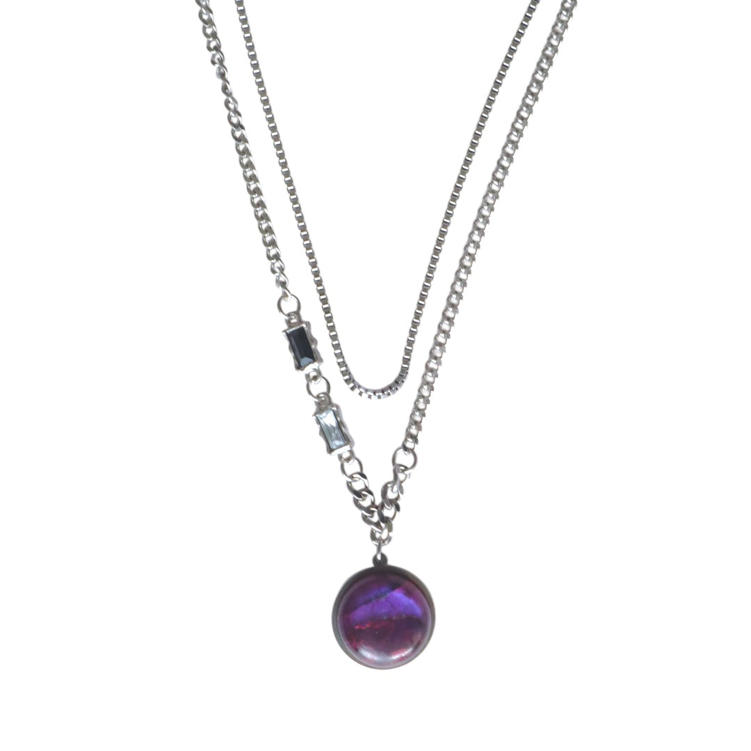 NYX Purple Labradorite Dual Chain Necklace Silver