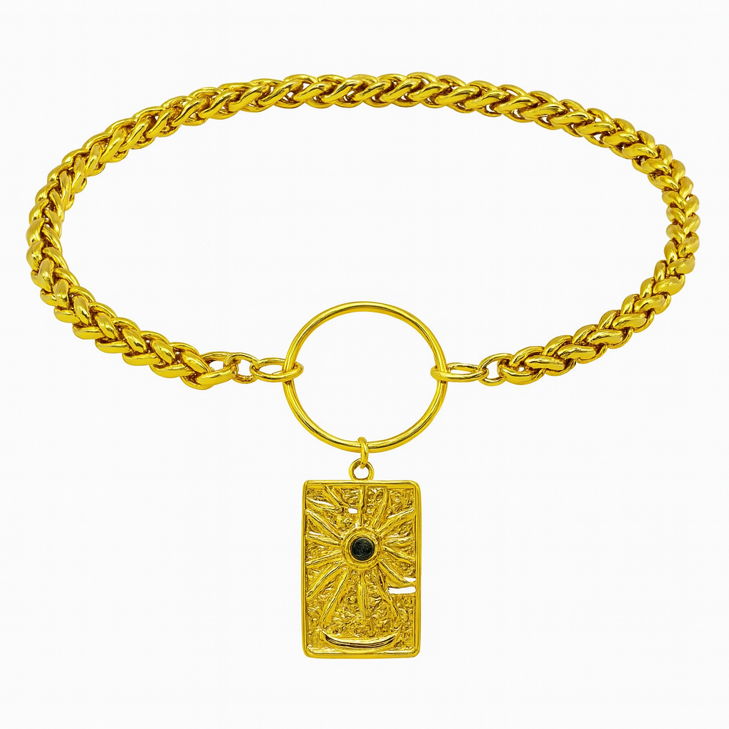 Unlock the transformative power of celestial jewelry with our Sunscape Sun Pendant Wheat Chain O Ring Choker Necklace. It's more than just a fashion statement – it's a symbol of your inner radiance and connection to the universe. Elevate your style and embrace the celestial magic that comes with wearing this extraordinary necklace.