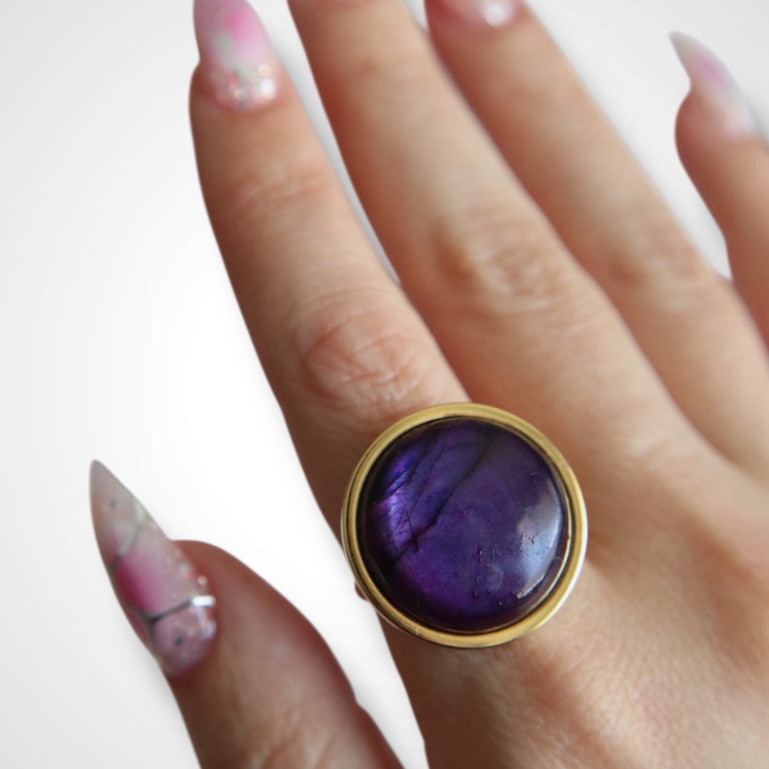 AYA Purple Labradorite Statement Ring Gold