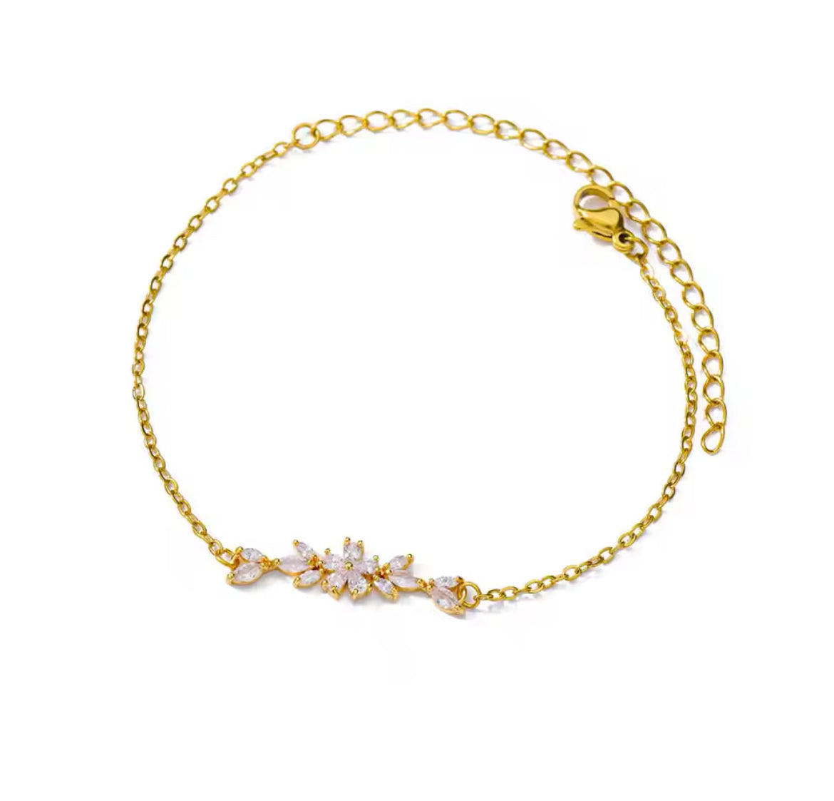Zircon Flower Petal Charm: At the heart of the FLORA bracelet is a delicate flower petal charm, crafted with shimmering zircon stones. Measuring 3cm in length, the charm adds a touch of sparkle and grace, symbolizing natural beauty and elegance.
