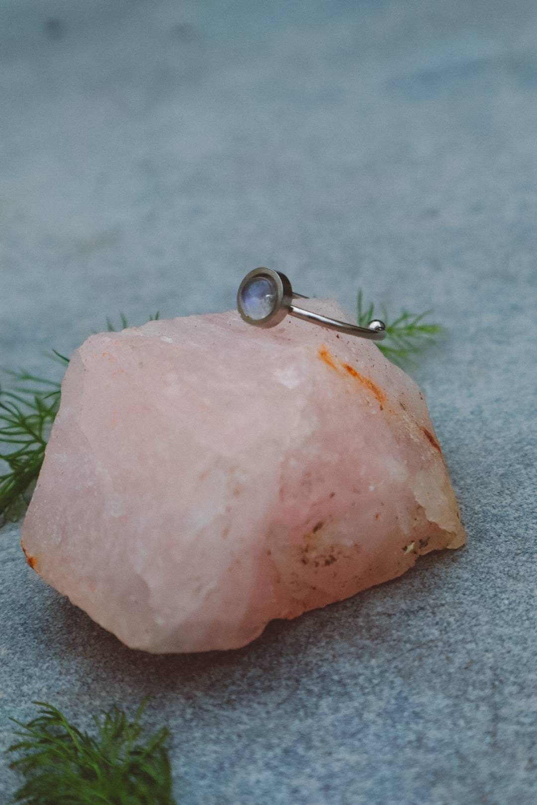 The ring features a round polished rainbow moonstone crystal in AAA quality of 6mm in diameter.